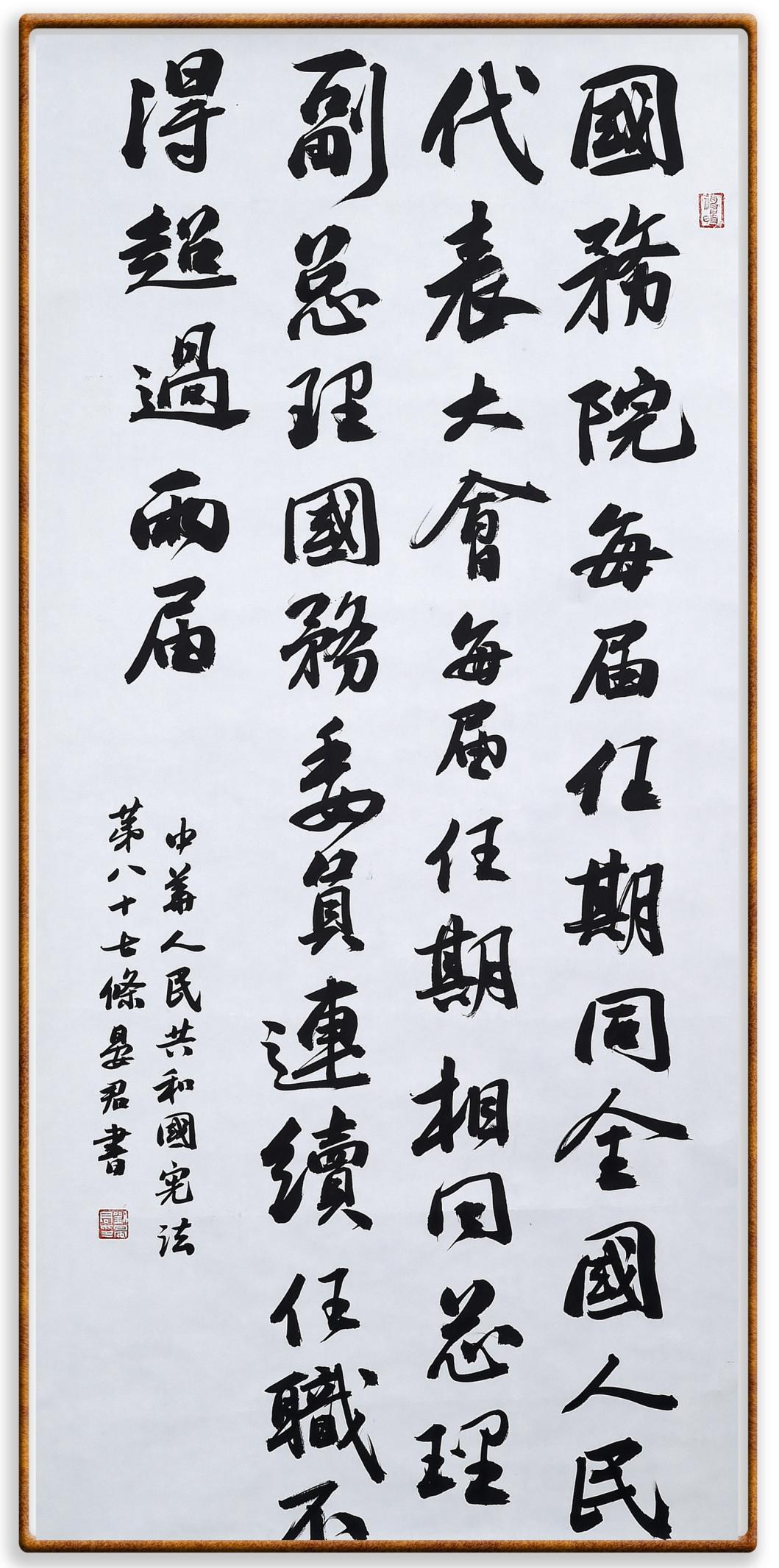 繼《中華人民共和國民法典》《中華人民共和國土地管理法》《中華人民共和國土地管理法實(shí)施條例》《中華人民共和國法律援助法》之后,法治日報(bào)社聯(lián)合北京市司法局、北京書法家協(xié)會,將筆端對準(zhǔn)《中華人民共和國憲法》和《中華人民共和國行政處罰法》。