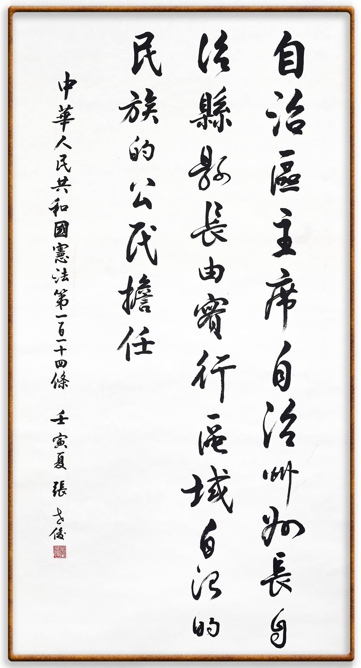繼《中華人民共和國民法典》《中華人民共和國土地管理法》《中華人民共和國土地管理法實(shí)施條例》《中華人民共和國法律援助法》之后,法治日?qǐng)?bào)社聯(lián)合北京市司法局、北京書法家協(xié)會(huì),將筆端對(duì)準(zhǔn)《中華人民共和國憲法》和《中華人民共和國行政處罰法》。