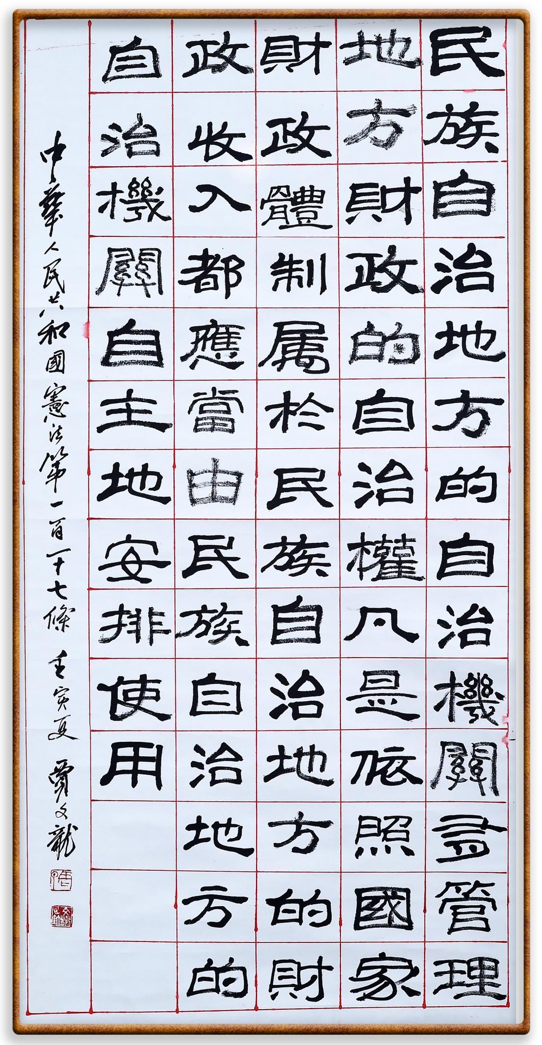 繼《中華人民共和國民法典》《中華人民共和國土地管理法》《中華人民共和國土地管理法實(shí)施條例》《中華人民共和國法律援助法》之后,法治日報社聯(lián)合北京市司法局、北京書法家協(xié)會,將筆端對準(zhǔn)《中華人民共和國憲法》和《中華人民共和國行政處罰法》。