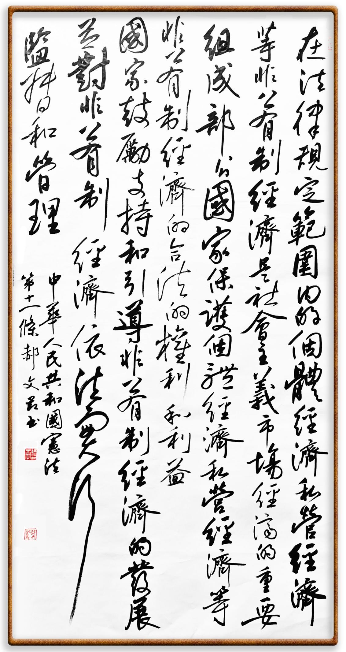 繼《中華人民共和國民法典》《中華人民共和國土地管理法》《中華人民共和國土地管理法實施條例》《中華人民共和國法律援助法》之后,法治日報社聯(lián)合北京市司法局、北京書法家協(xié)會,將筆端對準(zhǔn)《中華人民共和國憲法》和《中華人民共和國行政處罰法》。