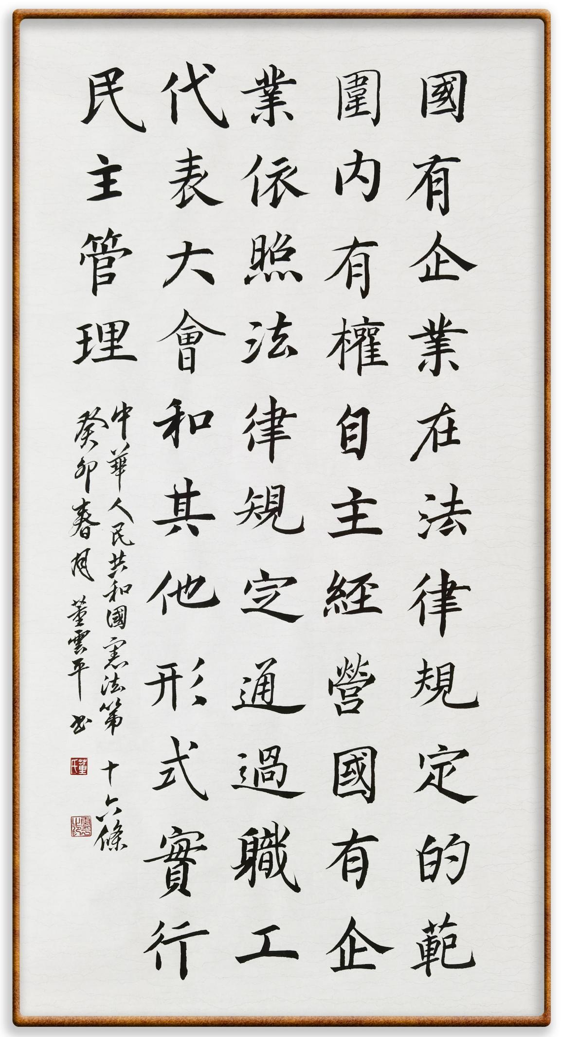 繼《中華人民共和國民法典》《中華人民共和國土地管理法》《中華人民共和國土地管理法實施條例》《中華人民共和國法律援助法》之后,法治日報社聯(lián)合北京市司法局、北京書法家協(xié)會,將筆端對準(zhǔn)《中華人民共和國憲法》和《中華人民共和國行政處罰法》。