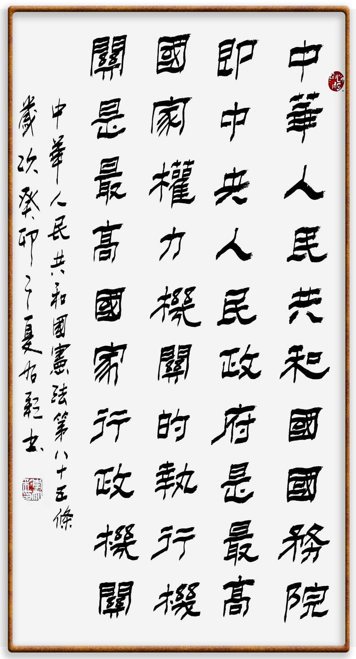 繼《中華人民共和國民法典》《中華人民共和國土地管理法》《中華人民共和國土地管理法實(shí)施條例》《中華人民共和國法律援助法》之后,法治日報(bào)社聯(lián)合北京市司法局、北京書法家協(xié)會(huì),將筆端對(duì)準(zhǔn)《中華人民共和國憲法》和《中華人民共和國行政處罰法》。