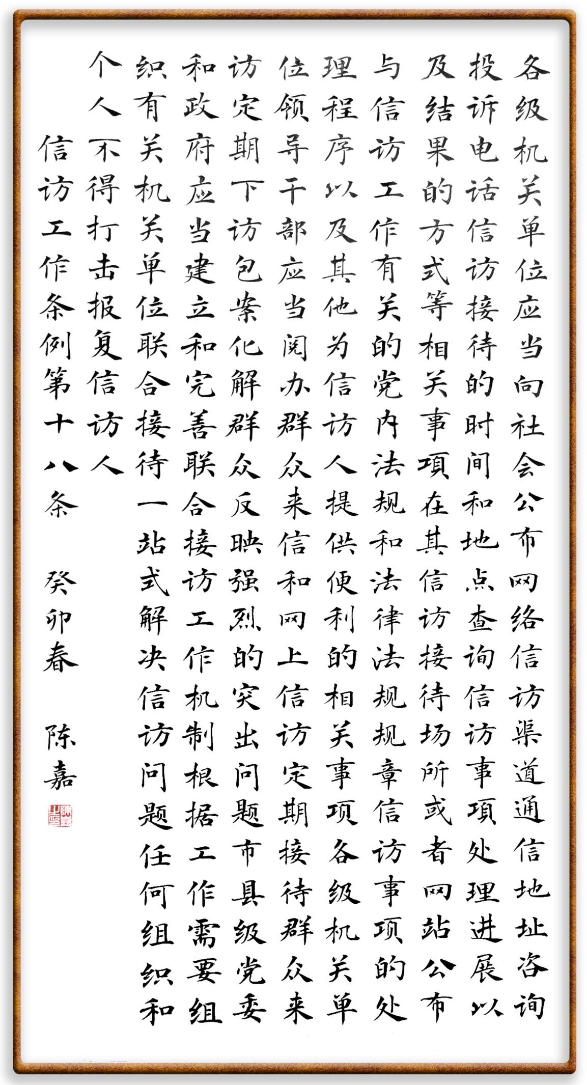 信訪工作條例第十八條 各級機關(guān)、單位應當向社會公布網(wǎng)絡(luò)信訪渠道、通信地址、咨詢投訴電話、信訪接待的時間和地點、查詢信訪事項處理進展以及結(jié)果的方式等相關(guān)事項,在其信訪接待場所或者網(wǎng)站公布與信訪工作有關(guān)的黨內(nèi)法規(guī)和法律、法規(guī)、規(guī)章,信訪事項的處理程序,以及其他為信訪人提供便利的相關(guān)事項。