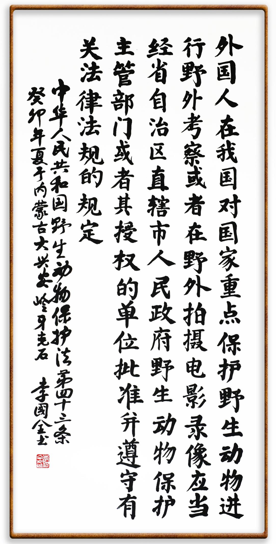 野生動物保護(hù)法第四十三條 外國人在我國對國家重點保護(hù)野生動物進(jìn)行野外考察或者在野外拍攝電影、錄像,應(yīng)當(dāng)經(jīng)省、自治區(qū)、直轄市人民政府野生動物保護(hù)主管部門或者其授權(quán)的單位批準(zhǔn),并遵守有關(guān)法律法規(guī)的規(guī)定。