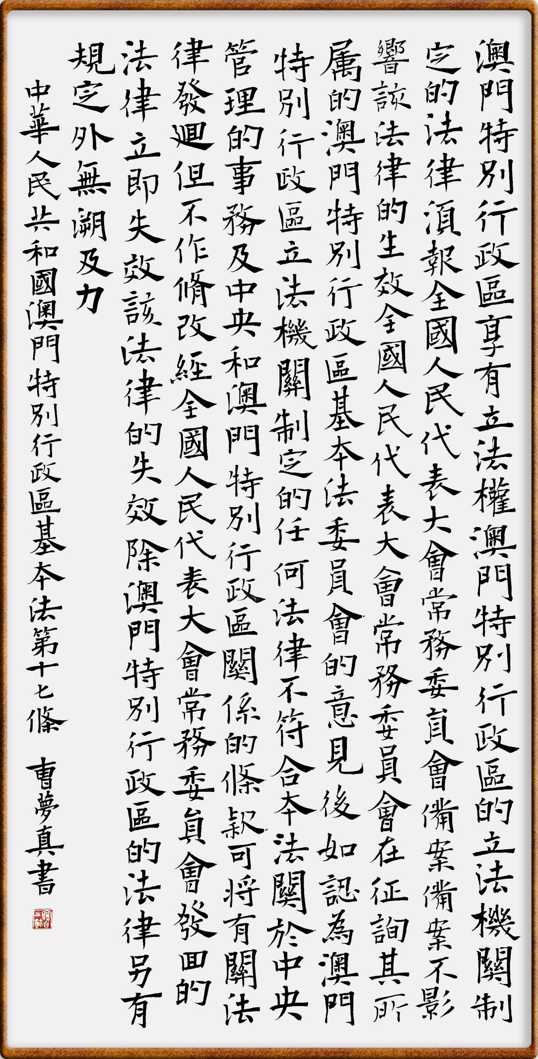 澳門(mén)基本法第十七條 澳門(mén)特別行政區(qū)享有立法權(quán)。