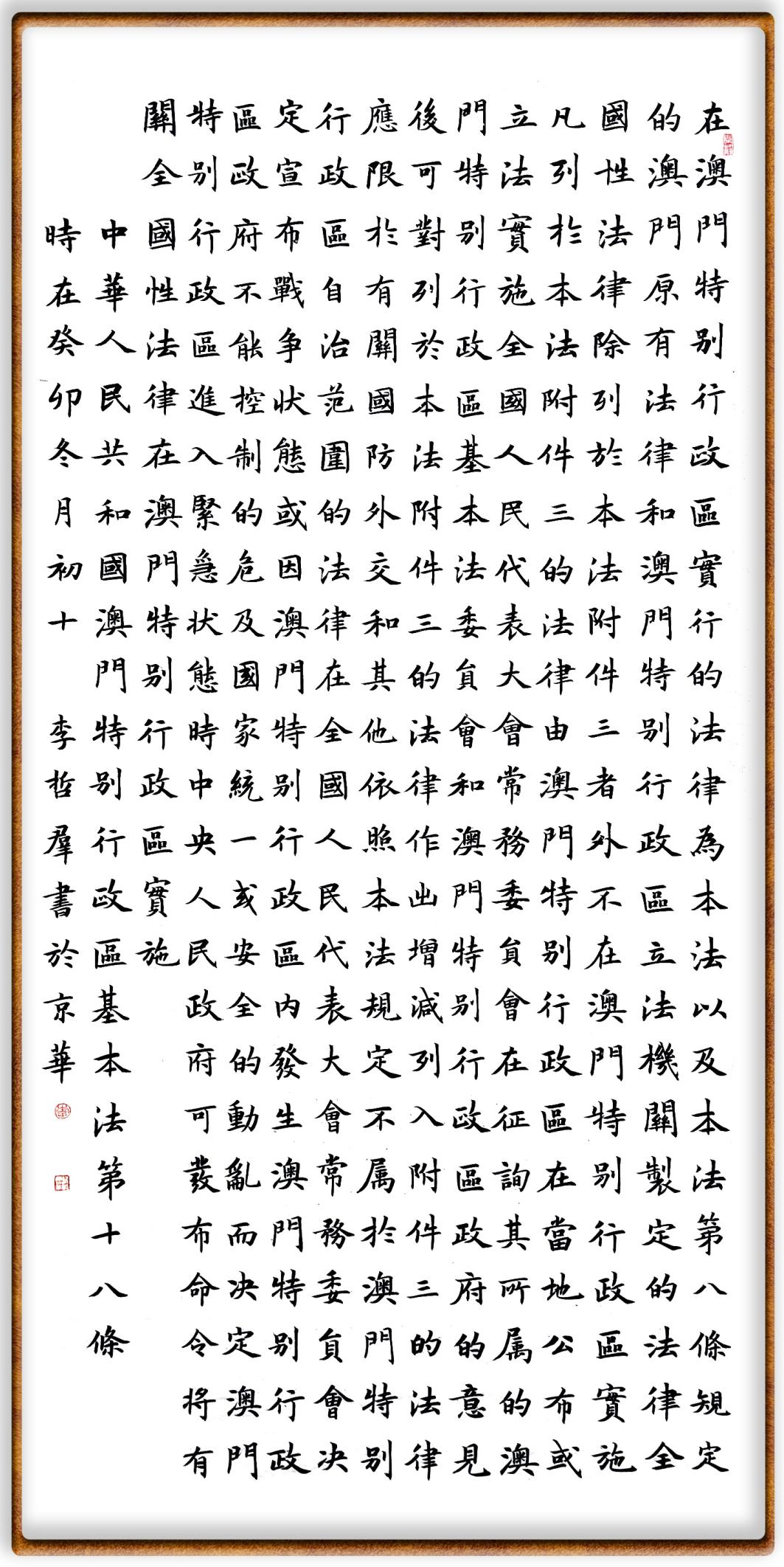 《中華人民共和國澳門特別行政區(qū)基本法》為澳門特別行政區(qū)各項(xiàng)事業(yè)發(fā)展提供了全方面的法治保障,對譜寫澳門“一國兩制”實(shí)踐新篇章具有重要意義。為學(xué)習(xí)好、宣傳好、貫徹好、實(shí)施好這部法律,繼《中華人民共和國民法典》《中華人民共和國憲法》《信訪工作條例》等法律法規(guī)之后,法制日報(bào)社聯(lián)合人和啟邦顯輝(橫琴)聯(lián)營律師事務(wù)所,將筆端對準(zhǔn)《中華人民共和國澳門特別行政區(qū)基本法》。