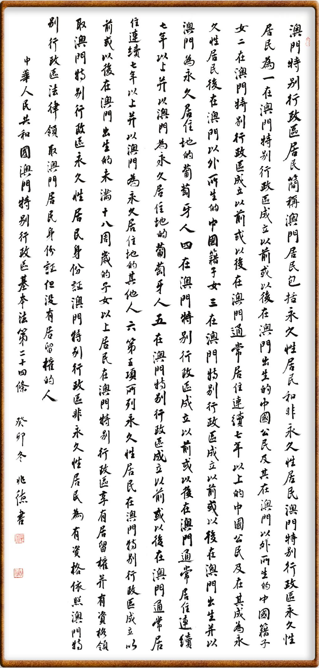 書·法|丁兆德:澳門基本法第二十四條