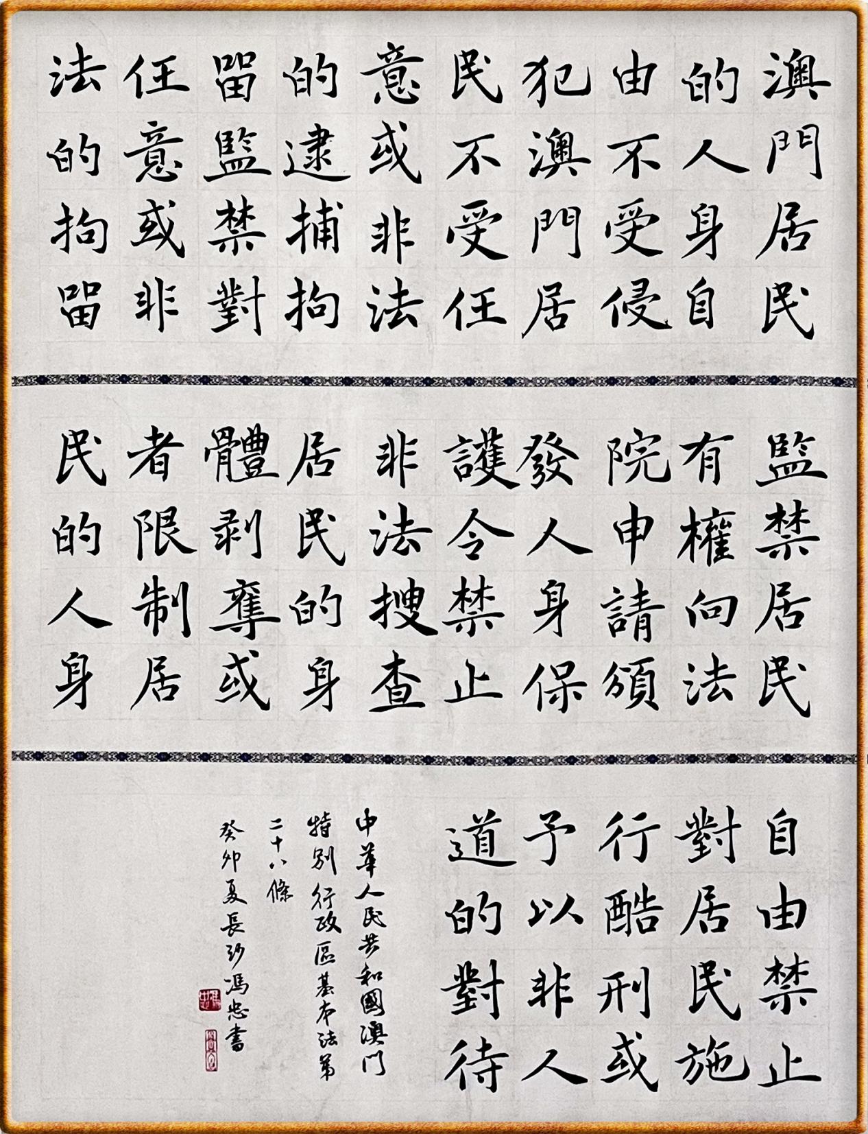 澳門基本法第二十八條 澳門居民的人身自由不受侵犯。