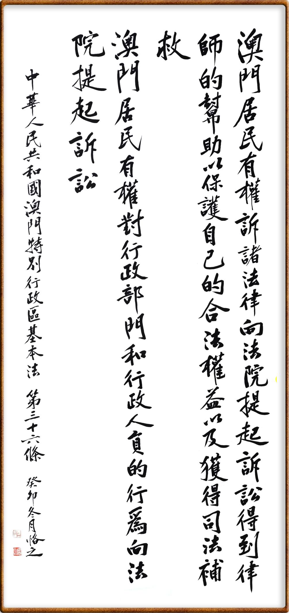 澳門(mén)基本法第三十六條 澳門(mén)居民有權(quán)訴諸法律,向法院提起訴訟,得到律師的幫助以保護(hù)自己的合法權(quán)益,以及獲得司法補(bǔ)救。