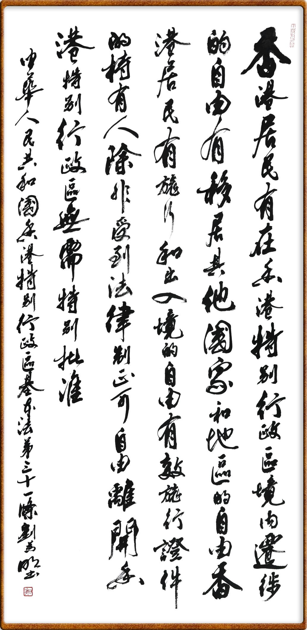 香港基本法第三十一條 香港居民有在香港特別行政區(qū)境內(nèi)遷徙的自由,有移居其他國家和地區(qū)的自由。香港居民有旅行和出入境的自由。有效旅行證件的持有人,除非受到法律制止,可自由離開香港特別行政區(qū),無需特別批準(zhǔn)。