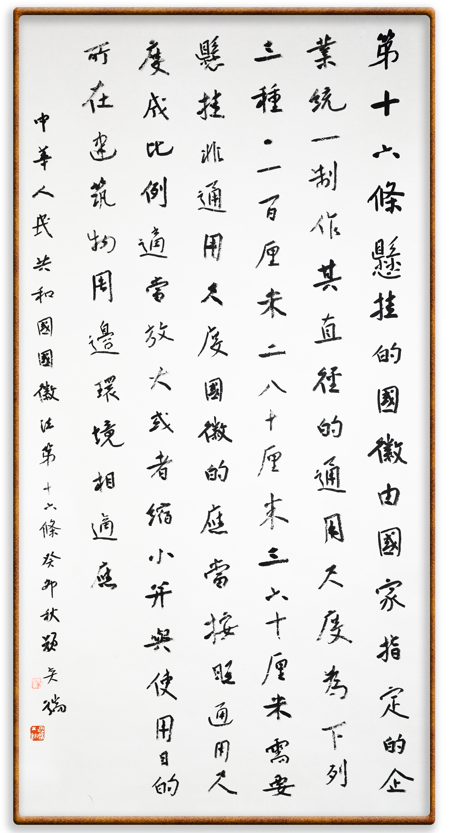 國徽法第十六條 懸掛的國徽由國家指定的企業(yè)統(tǒng)一制作,其直徑的通用尺度為下列三種: