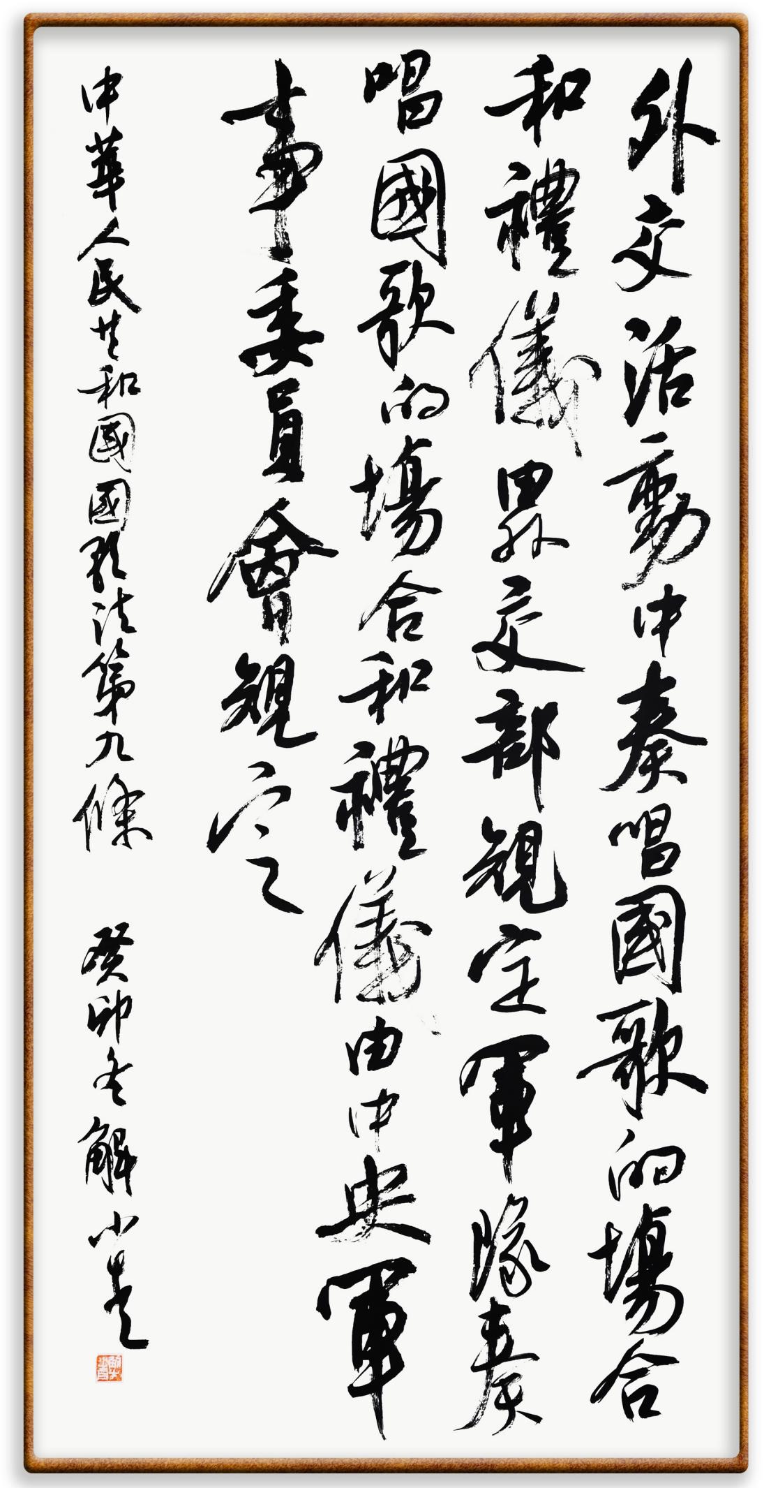 國歌法第九條 外交活動(dòng)中奏唱國歌的場(chǎng)合和禮儀,由外交部規(guī)定。