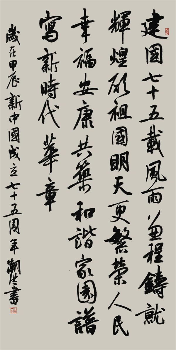 潮洪,安徽省蜀山監(jiān)獄一級(jí)警長(zhǎng)、中國(guó)書法家協(xié)會(huì)會(huì)員、安徽省書法家協(xié)會(huì)草書委員會(huì)副秘書長(zhǎng)、合肥市書法家協(xié)會(huì)理事。新中國(guó)成立七十五周年