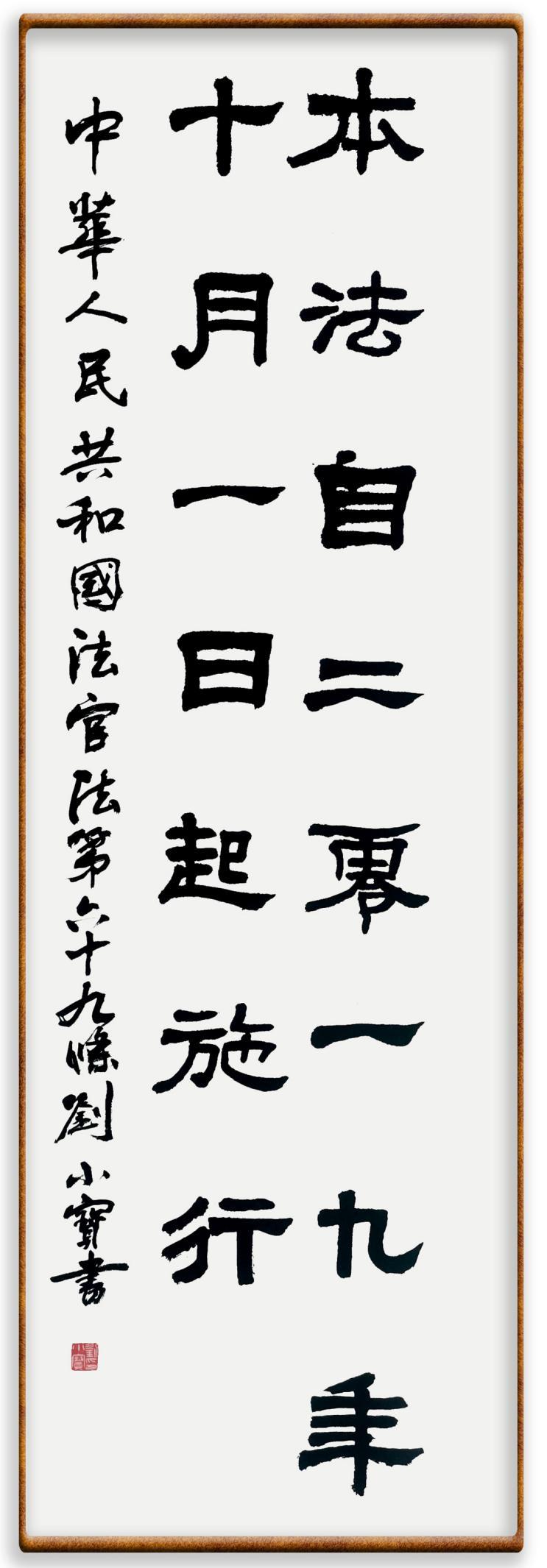 劉小寶,中國法官文聯(lián)常務理事兼書法專業(yè)委員會副主任委員,中國法學會法治文化研究會第二屆理事會理事,最高人民法院行裝局原副局長。