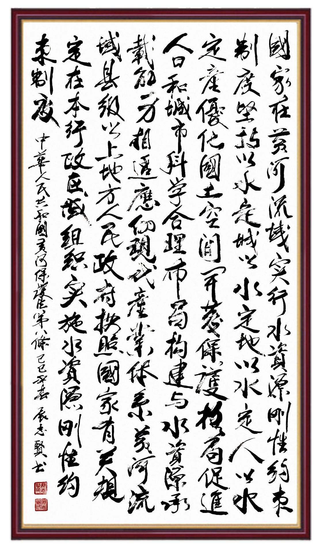 黃河寧,天下平。黃河是中華民族的發(fā)源地和搖籃,保護(hù)黃河是事關(guān)中華民族偉大復(fù)興的千秋大計(jì)?!吨腥A人民共和國(guó)黃河保護(hù)法》為推進(jìn)水資源節(jié)約集約利用、保護(hù)傳承弘揚(yáng)黃河文化、推動(dòng)黃河流域生態(tài)保護(hù)和高質(zhì)量發(fā)展提供了有力法治保障。繼書(shū)寫(xiě)《中華人民共和國(guó)民法典》《中華人民共和國(guó)憲法》《中華人民共和國(guó)澳門(mén)特別行政區(qū)基本法》《中華人民共和國(guó)香港特別行政區(qū)基本法》《中華人民共和國(guó)國(guó)旗法》《中華人民共和國(guó)國(guó)徽法》《中華人民共和國(guó)國(guó)歌法》《中華人民共和國(guó)法官法》等法律法規(guī)之后,法制日?qǐng)?bào)社聯(lián)合沿黃九?。▍^(qū))司法廳、書(shū)法家協(xié)會(huì),將筆端對(duì)準(zhǔn)《中華人民共和國(guó)黃河保護(hù)法》。