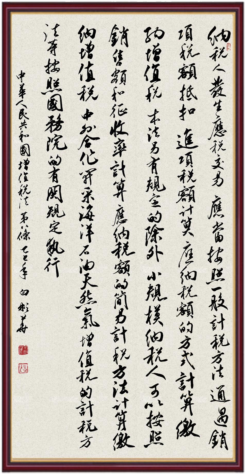 稅收一頭連著國計,一頭連著民生。全面推進依法治稅,是全面依法治國基本方略在稅收領(lǐng)域的集中體現(xiàn)。《中華人民共和國增值稅法》將于2026年1月1日起施行,對全面落實稅收法定原則、健全有利于高質(zhì)量發(fā)展的增值稅制度、規(guī)范增值稅的征收和繳納、保護納稅人合法權(quán)益具有重要意義。繼書寫《中華人民共和國民法典》《中華人民共和國憲法》《中華人民共和國國旗法》《中華人民共和國國徽法》《中華人民共和國國歌法》《中華人民共和國法官法》《中華人民共和國黃河保護法》等法律法規(guī)之后,法制日報社將筆端對準(zhǔn)《中華人民共和國增值稅法》。
