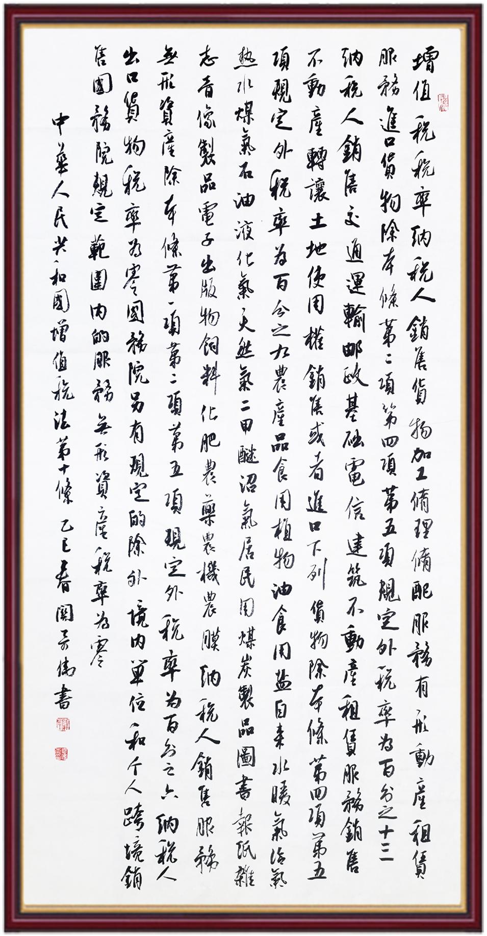 稅收一頭連著國計,一頭連著民生。全面推進(jìn)依法治稅,是全面依法治國基本方略在稅收領(lǐng)域的集中體現(xiàn)?!吨腥A人民共和國增值稅法》將于2026年1月1日起施行,對全面落實稅收法定原則、健全有利于高質(zhì)量發(fā)展的增值稅制度、規(guī)范增值稅的征收和繳納、保護(hù)納稅人合法權(quán)益具有重要意義。繼書寫《中華人民共和國民法典》《中華人民共和國憲法》《中華人民共和國國旗法》《中華人民共和國國徽法》《中華人民共和國國歌法》《中華人民共和國法官法》《中華人民共和國黃河保護(hù)法》等法律法規(guī)之后,法制日報社將筆端對準(zhǔn)《中華人民共和國增值稅法》。