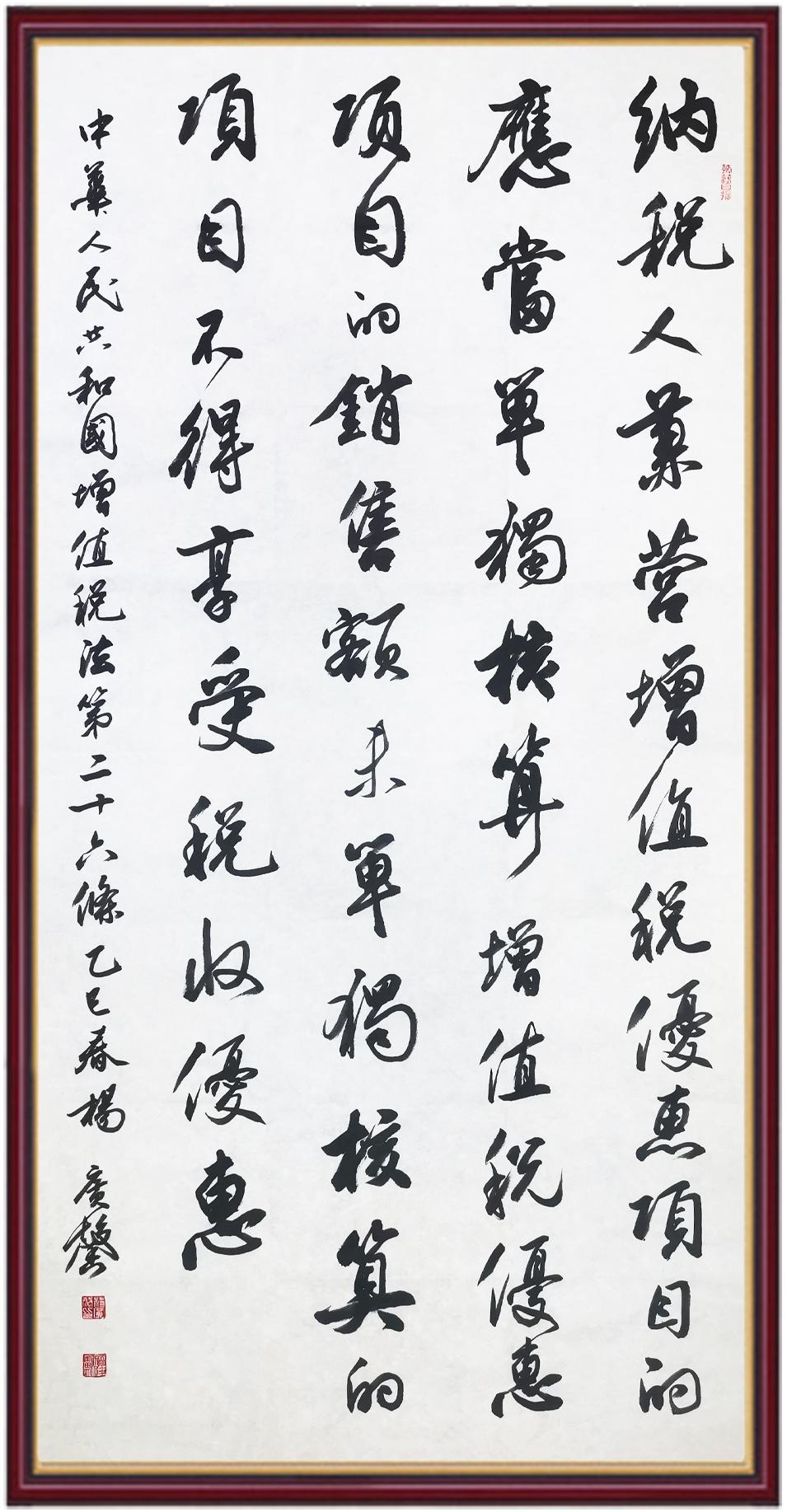 稅收一頭連著國計,一頭連著民生。全面推進依法治稅,是全面依法治國基本方略在稅收領域的集中體現(xiàn)。《中華人民共和國增值稅法》將于2026年1月1日起施行,對全面落實稅收法定原則、健全有利于高質(zhì)量發(fā)展的增值稅制度、規(guī)范增值稅的征收和繳納、保護納稅人合法權益具有重要意義。繼書寫《中華人民共和國民法典》《中華人民共和國憲法》《中華人民共和國國旗法》《中華人民共和國國徽法》《中華人民共和國國歌法》《中華人民共和國法官法》《中華人民共和國黃河保護法》等法律法規(guī)之后,法制日報社將筆端對準《中華人民共和國增值稅法》。