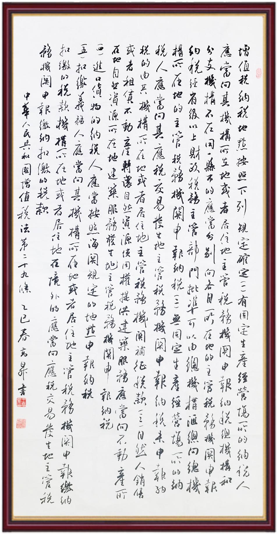 稅收一頭連著國(guó)計(jì),一頭連著民生。全面推進(jìn)依法治稅,是全面依法治國(guó)基本方略在稅收領(lǐng)域的集中體現(xiàn)?!吨腥A人民共和國(guó)增值稅法》將于2026年1月1日起施行,對(duì)全面落實(shí)稅收法定原則、健全有利于高質(zhì)量發(fā)展的增值稅制度、規(guī)范增值稅的征收和繳納、保護(hù)納稅人合法權(quán)益具有重要意義。繼書(shū)寫(xiě)《中華人民共和國(guó)民法典》《中華人民共和國(guó)憲法》《中華人民共和國(guó)國(guó)旗法》《中華人民共和國(guó)國(guó)徽法》《中華人民共和國(guó)國(guó)歌法》《中華人民共和國(guó)法官法》《中華人民共和國(guó)黃河保護(hù)法》等法律法規(guī)之后,法制日?qǐng)?bào)社將筆端對(duì)準(zhǔn)《中華人民共和國(guó)增值稅法》。