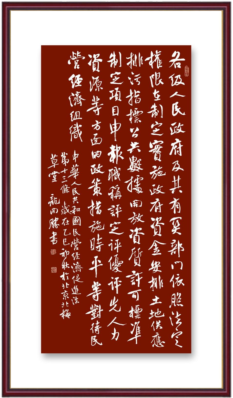 《中華人民共和國(guó)民營(yíng)經(jīng)濟(jì)促進(jìn)法》自今年5月20日起施行。作為我國(guó)首部專(zhuān)門(mén)關(guān)于民營(yíng)經(jīng)濟(jì)發(fā)展的基礎(chǔ)性法律,民營(yíng)經(jīng)濟(jì)促進(jìn)法將支持和保障民營(yíng)經(jīng)濟(jì)發(fā)展的法律制度融入中國(guó)特色社會(huì)主義法律體系,具有重大的法治意義,為促進(jìn)民營(yíng)經(jīng)濟(jì)持續(xù)、健康、高質(zhì)量發(fā)展提供了堅(jiān)實(shí)的法治保障。為更好地學(xué)習(xí)、宣傳、貫徹這部法律,法治日?qǐng)?bào)社聯(lián)合司法部普法與依法治理局,開(kāi)展“‘書(shū)·法’系列活動(dòng)之書(shū)寫(xiě)《中華人民共和國(guó)民營(yíng)經(jīng)濟(jì)促進(jìn)法》”活動(dòng)。
