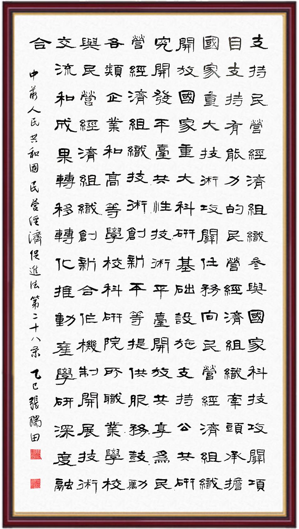 《中華人民共和國民營經(jīng)濟(jì)促進(jìn)法》自今年5月20日起施行。作為我國首部專門關(guān)于民營經(jīng)濟(jì)發(fā)展的基礎(chǔ)性法律,民營經(jīng)濟(jì)促進(jìn)法將支持和保障民營經(jīng)濟(jì)發(fā)展的法律制度融入中國特色社會主義法律體系,具有重大的法治意義,為促進(jìn)民營經(jīng)濟(jì)持續(xù)、健康、高質(zhì)量發(fā)展提供了堅(jiān)實(shí)的法治保障。為更好地學(xué)習(xí)、宣傳、貫徹這部法律,法治日報(bào)社聯(lián)合司法部普法與依法治理局,開展“‘書·法’系列活動(dòng)之書寫《中華人民共和國民營經(jīng)濟(jì)促進(jìn)法》”活動(dòng)。