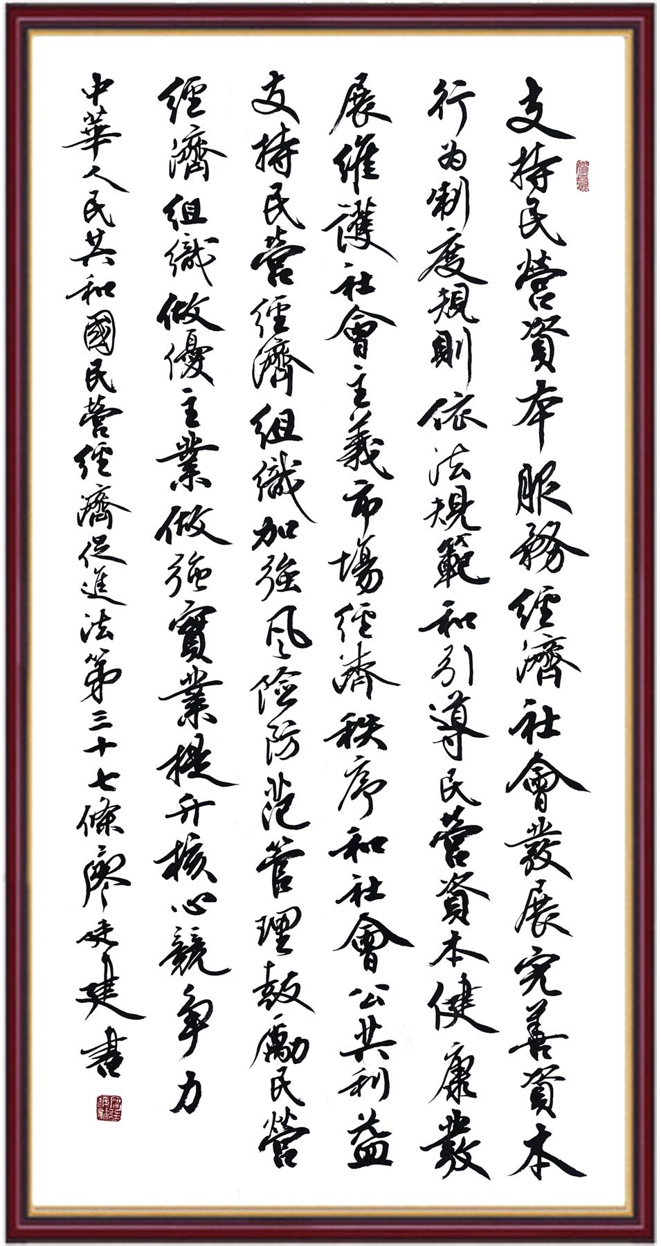 《中華人民共和國民營經(jīng)濟促進法》自今年5月20日起施行。作為我國首部專門關(guān)于民營經(jīng)濟發(fā)展的基礎(chǔ)性法律,民營經(jīng)濟促進法將支持和保障民營經(jīng)濟發(fā)展的法律制度融入中國特色社會主義法律體系,具有重大的法治意義,為促進民營經(jīng)濟持續(xù)、健康、高質(zhì)量發(fā)展提供了堅實的法治保障。為更好地學習、宣傳、貫徹這部法律,法治日報社聯(lián)合司法部普法與依法治理局,開展“‘書·法’系列活動之書寫《中華人民共和國民營經(jīng)濟促進法》”活動。