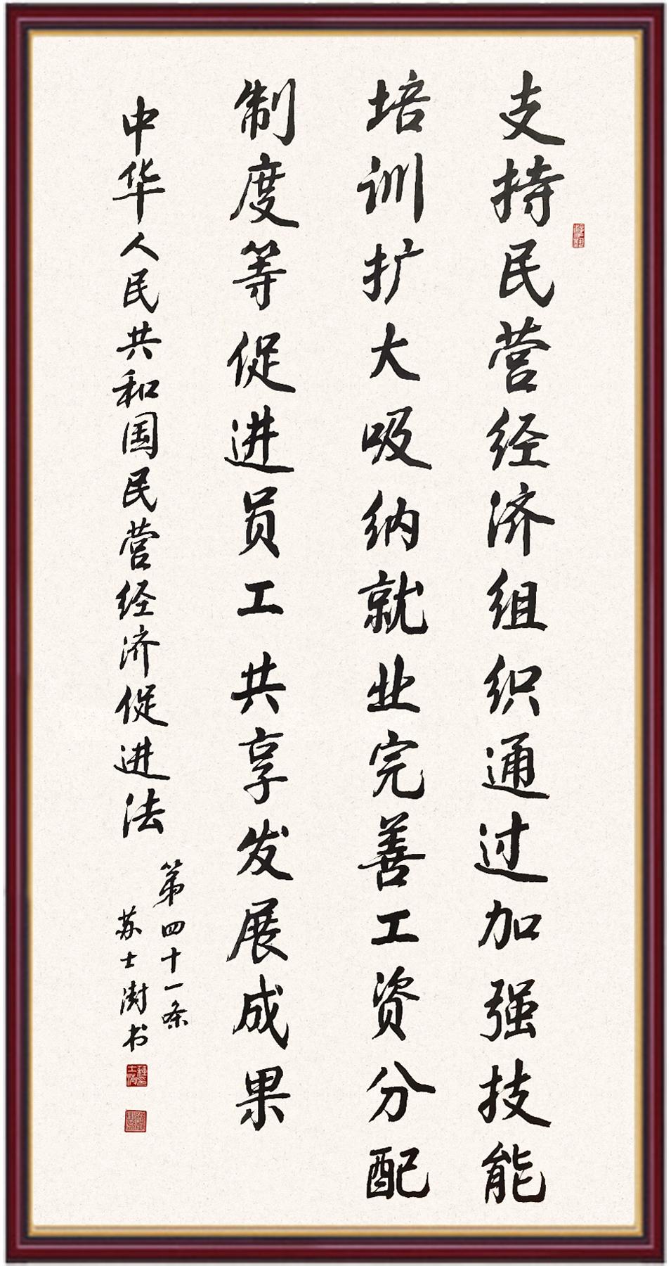 《中華人民共和國(guó)民營(yíng)經(jīng)濟(jì)促進(jìn)法》自今年5月20日起施行。作為我國(guó)首部專門關(guān)于民營(yíng)經(jīng)濟(jì)發(fā)展的基礎(chǔ)性法律,民營(yíng)經(jīng)濟(jì)促進(jìn)法將支持和保障民營(yíng)經(jīng)濟(jì)發(fā)展的法律制度融入中國(guó)特色社會(huì)主義法律體系,具有重大的法治意義,為促進(jìn)民營(yíng)經(jīng)濟(jì)持續(xù)、健康、高質(zhì)量發(fā)展提供了堅(jiān)實(shí)的法治保障。為更好地學(xué)習(xí)、宣傳、貫徹這部法律,法治日?qǐng)?bào)社聯(lián)合司法部普法與依法治理局,開展“‘書·法’系列活動(dòng)之書寫《中華人民共和國(guó)民營(yíng)經(jīng)濟(jì)促進(jìn)法》”活動(dòng)。
