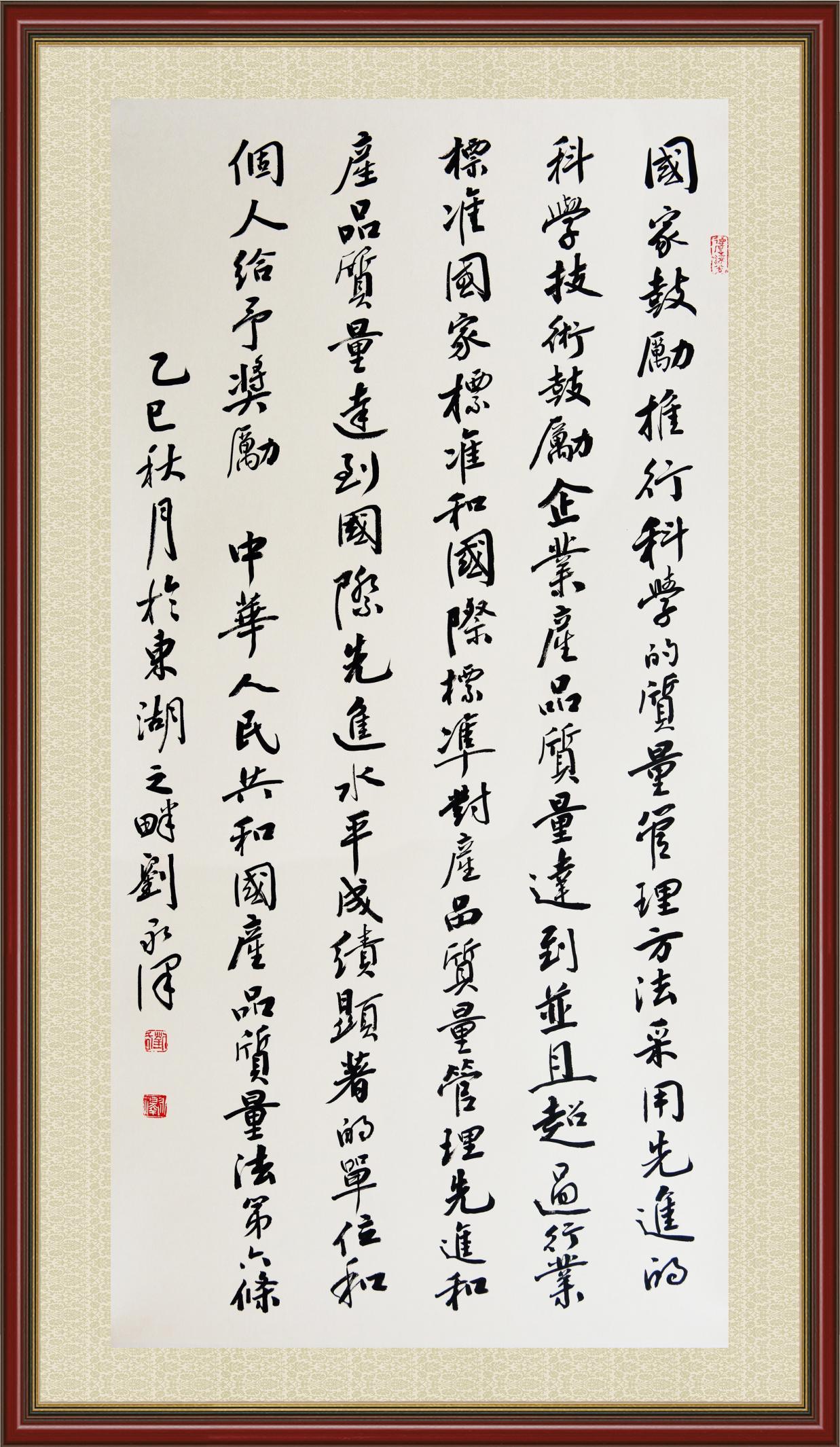 《中華人民共和國(guó)產(chǎn)品質(zhì)量法》自1993年9月1日起開始施行,先后進(jìn)行三次修正。作為產(chǎn)品質(zhì)量領(lǐng)域的基本法律,產(chǎn)品質(zhì)量法對(duì)規(guī)范產(chǎn)品質(zhì)量管理、維護(hù)消費(fèi)者合法權(quán)益、促進(jìn)經(jīng)濟(jì)社會(huì)發(fā)展具有重要意義。為更好地學(xué)習(xí)、宣傳、貫徹這部法律,在國(guó)家市場(chǎng)監(jiān)督管理總局法規(guī)司的支持下,法治日?qǐng)?bào)社開展了“‘書·法’系列活動(dòng)之書寫《中華人民共和國(guó)產(chǎn)品質(zhì)量法》”活動(dòng)。