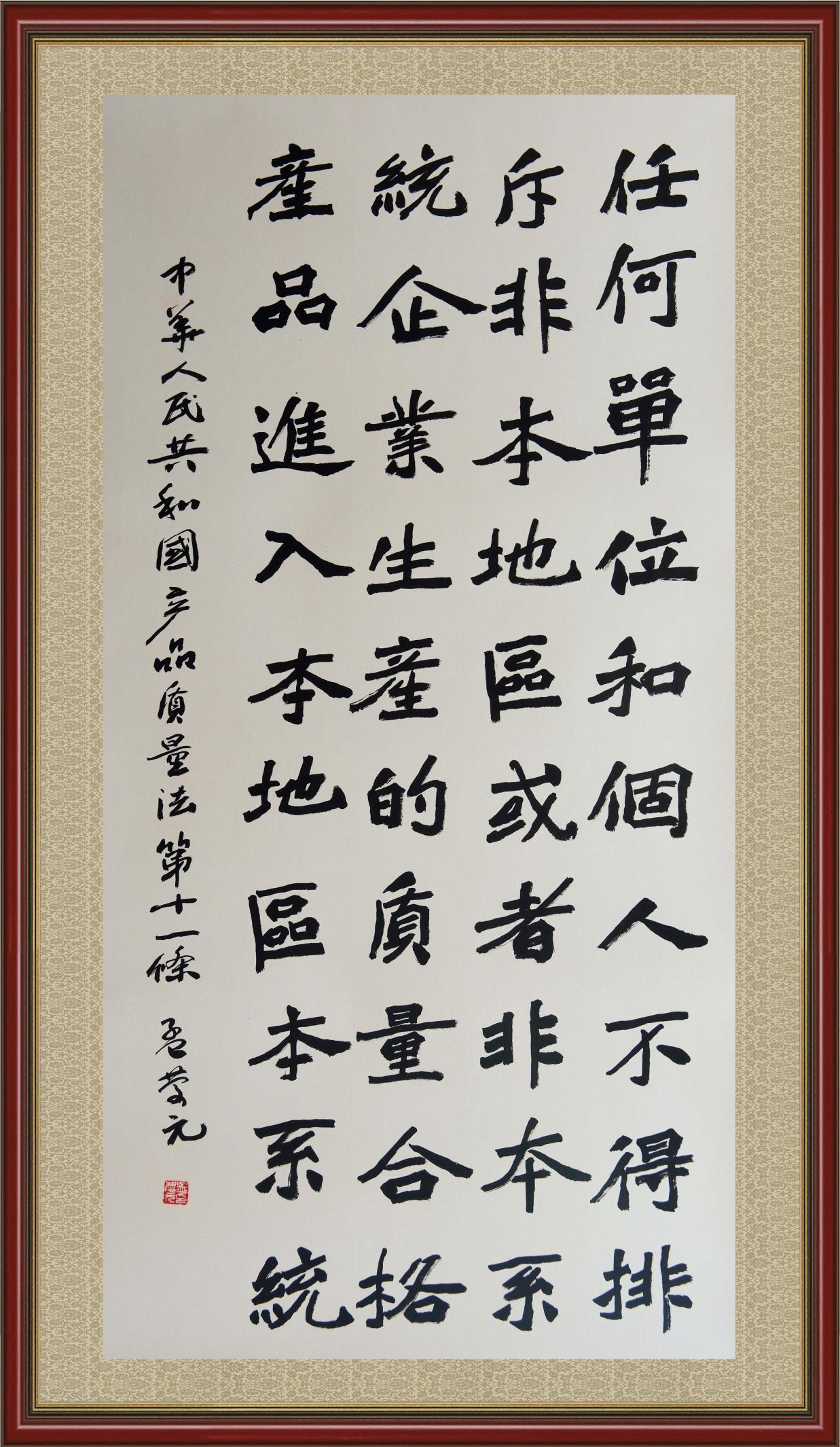 《中華人民共和國產(chǎn)品質(zhì)量法》自1993年9月1日起開始施行,先后進(jìn)行三次修正。作為產(chǎn)品質(zhì)量領(lǐng)域的基本法律,產(chǎn)品質(zhì)量法對規(guī)范產(chǎn)品質(zhì)量管理、維護(hù)消費(fèi)者合法權(quán)益、促進(jìn)經(jīng)濟(jì)社會(huì)發(fā)展具有重要意義。為更好地學(xué)習(xí)、宣傳、貫徹這部法律,在國家市場監(jiān)督管理總局法規(guī)司的支持下,法治日報(bào)社開展了“‘書·法’系列活動(dòng)之書寫《中華人民共和國產(chǎn)品質(zhì)量法》”活動(dòng)。