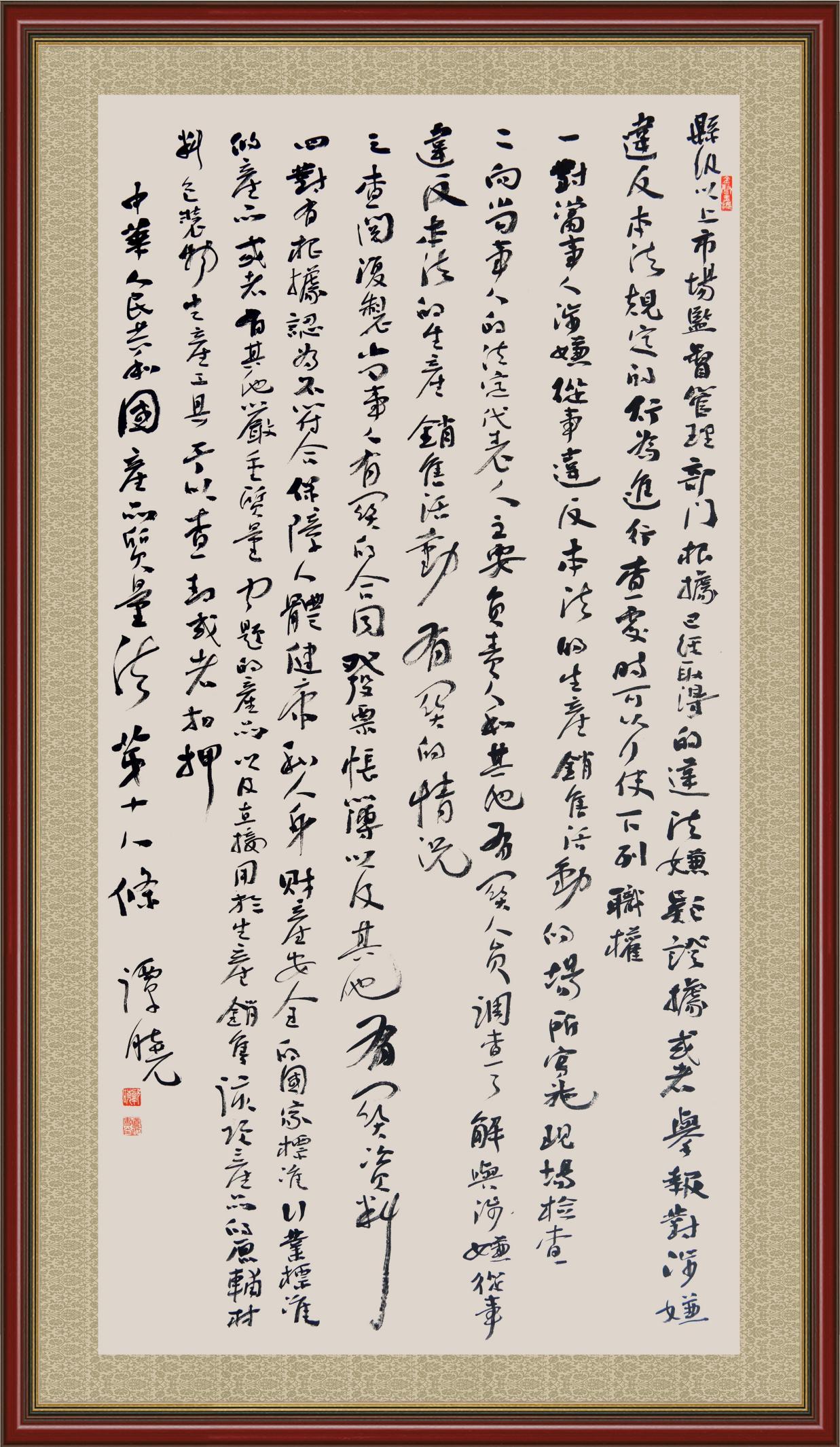 《中華人民共和國(guó)產(chǎn)品質(zhì)量法》自1993年9月1日起開(kāi)始施行,先后進(jìn)行三次修正。作為產(chǎn)品質(zhì)量領(lǐng)域的基本法律,產(chǎn)品質(zhì)量法對(duì)規(guī)范產(chǎn)品質(zhì)量管理、維護(hù)消費(fèi)者合法權(quán)益、促進(jìn)經(jīng)濟(jì)社會(huì)發(fā)展具有重要意義。為更好地學(xué)習(xí)、宣傳、貫徹這部法律,在國(guó)家市場(chǎng)監(jiān)督管理總局法規(guī)司的支持下,法治日?qǐng)?bào)社開(kāi)展了“‘書(shū)·法’系列活動(dòng)之書(shū)寫《中華人民共和國(guó)產(chǎn)品質(zhì)量法》”活動(dòng)。