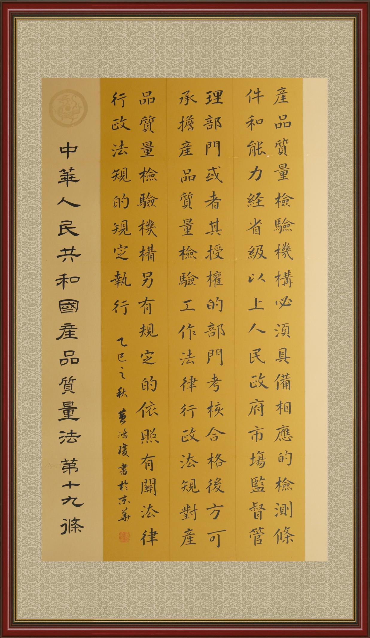 《中華人民共和國產(chǎn)品質(zhì)量法》自1993年9月1日起開始施行,先后進(jìn)行三次修正。作為產(chǎn)品質(zhì)量領(lǐng)域的基本法律,產(chǎn)品質(zhì)量法對規(guī)范產(chǎn)品質(zhì)量管理、維護(hù)消費(fèi)者合法權(quán)益、促進(jìn)經(jīng)濟(jì)社會發(fā)展具有重要意義。為更好地學(xué)習(xí)、宣傳、貫徹這部法律,在國家市場監(jiān)督管理總局法規(guī)司的支持下,法治日報社開展了“‘書·法’系列活動之書寫《中華人民共和國產(chǎn)品質(zhì)量法》”活動。