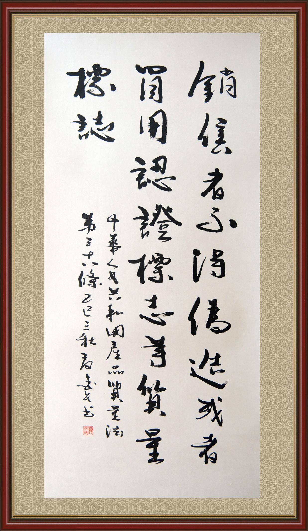 《中華人民共和國產(chǎn)品質(zhì)量法》自1993年9月1日起開始施行,先后進行三次修正。作為產(chǎn)品質(zhì)量領(lǐng)域的基本法律,產(chǎn)品質(zhì)量法對規(guī)范產(chǎn)品質(zhì)量管理、維護消費者合法權(quán)益、促進經(jīng)濟社會發(fā)展具有重要意義。為更好地學(xué)習(xí)、宣傳、貫徹這部法律,在國家市場監(jiān)督管理總局法規(guī)司的支持下,法治日報社開展了“‘書·法’系列活動之書寫《中華人民共和國產(chǎn)品質(zhì)量法》”活動。