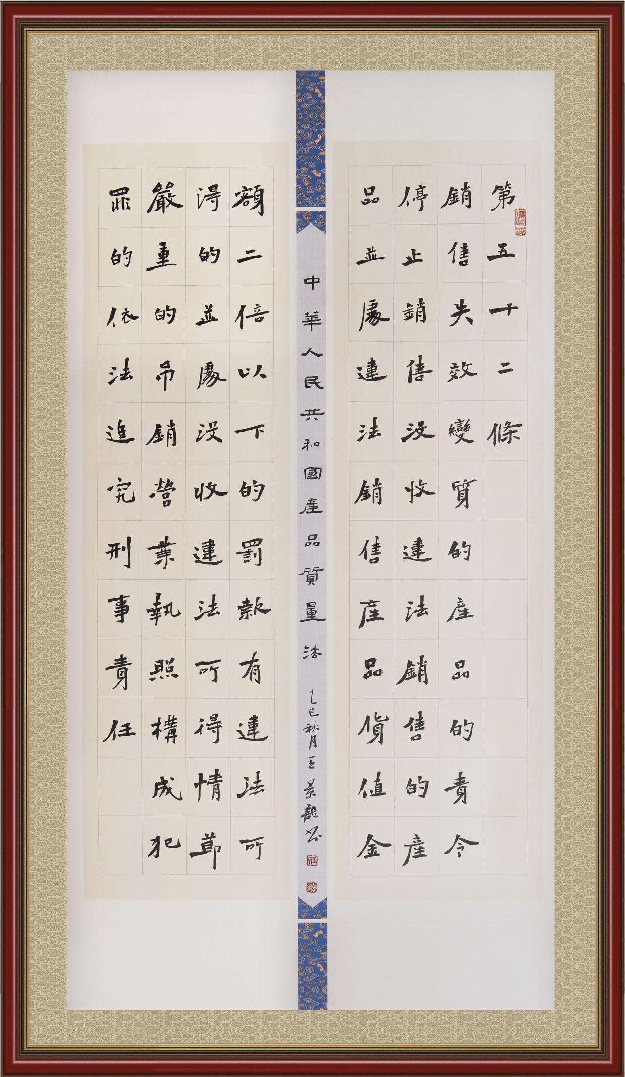 《中華人民共和國產(chǎn)品質(zhì)量法》自1993年9月1日起開始施行,先后進行三次修正。作為產(chǎn)品質(zhì)量領(lǐng)域的基本法律,產(chǎn)品質(zhì)量法對規(guī)范產(chǎn)品質(zhì)量管理、維護消費者合法權(quán)益、促進經(jīng)濟社會發(fā)展具有重要意義。為更好地學習、宣傳、貫徹這部法律,在國家市場監(jiān)督管理總局法規(guī)司的支持下,法治日報社開展了“‘書·法’系列活動之書寫《中華人民共和國產(chǎn)品質(zhì)量法》”活動。