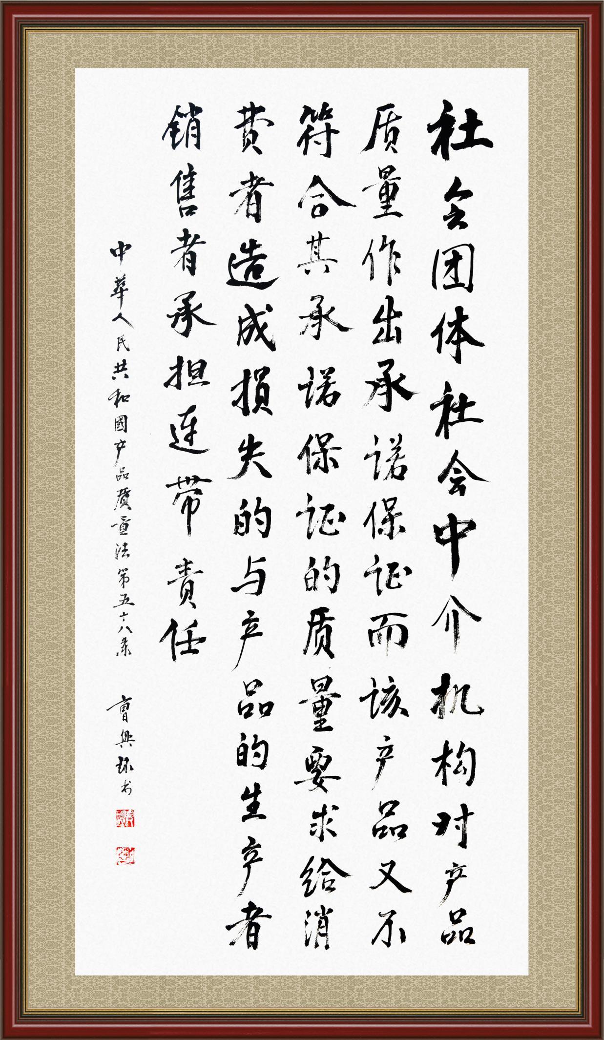 《中華人民共和國產(chǎn)品質(zhì)量法》自1993年9月1日起開始施行,先后進(jìn)行三次修正。作為產(chǎn)品質(zhì)量領(lǐng)域的基本法律,產(chǎn)品質(zhì)量法對規(guī)范產(chǎn)品質(zhì)量管理、維護(hù)消費(fèi)者合法權(quán)益、促進(jìn)經(jīng)濟(jì)社會(huì)發(fā)展具有重要意義。為更好地學(xué)習(xí)、宣傳、貫徹這部法律,在國家市場監(jiān)督管理總局法規(guī)司的支持下,法治日報(bào)社開展了“‘書·法’系列活動(dòng)之書寫《中華人民共和國產(chǎn)品質(zhì)量法》”活動(dòng)。