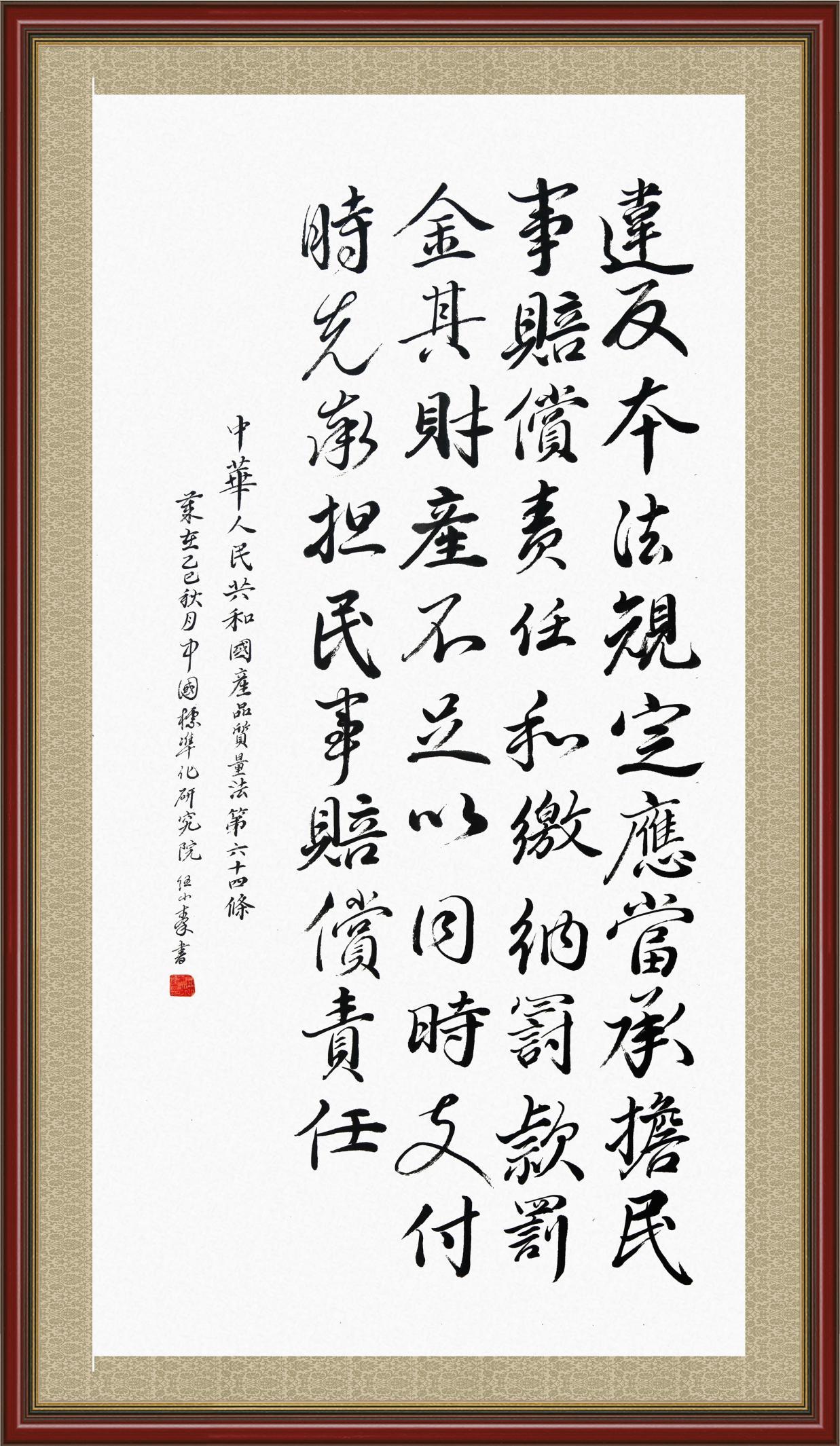 《中華人民共和國產(chǎn)品質(zhì)量法》自1993年9月1日起開始施行,先后進(jìn)行三次修正。作為產(chǎn)品質(zhì)量領(lǐng)域的基本法律,產(chǎn)品質(zhì)量法對規(guī)范產(chǎn)品質(zhì)量管理、維護(hù)消費(fèi)者合法權(quán)益、促進(jìn)經(jīng)濟(jì)社會發(fā)展具有重要意義。為更好地學(xué)習(xí)、宣傳、貫徹這部法律,在國家市場監(jiān)督管理總局法規(guī)司的支持下,法治日報社開展了“‘書·法’系列活動之書寫《中華人民共和國產(chǎn)品質(zhì)量法》”活動。