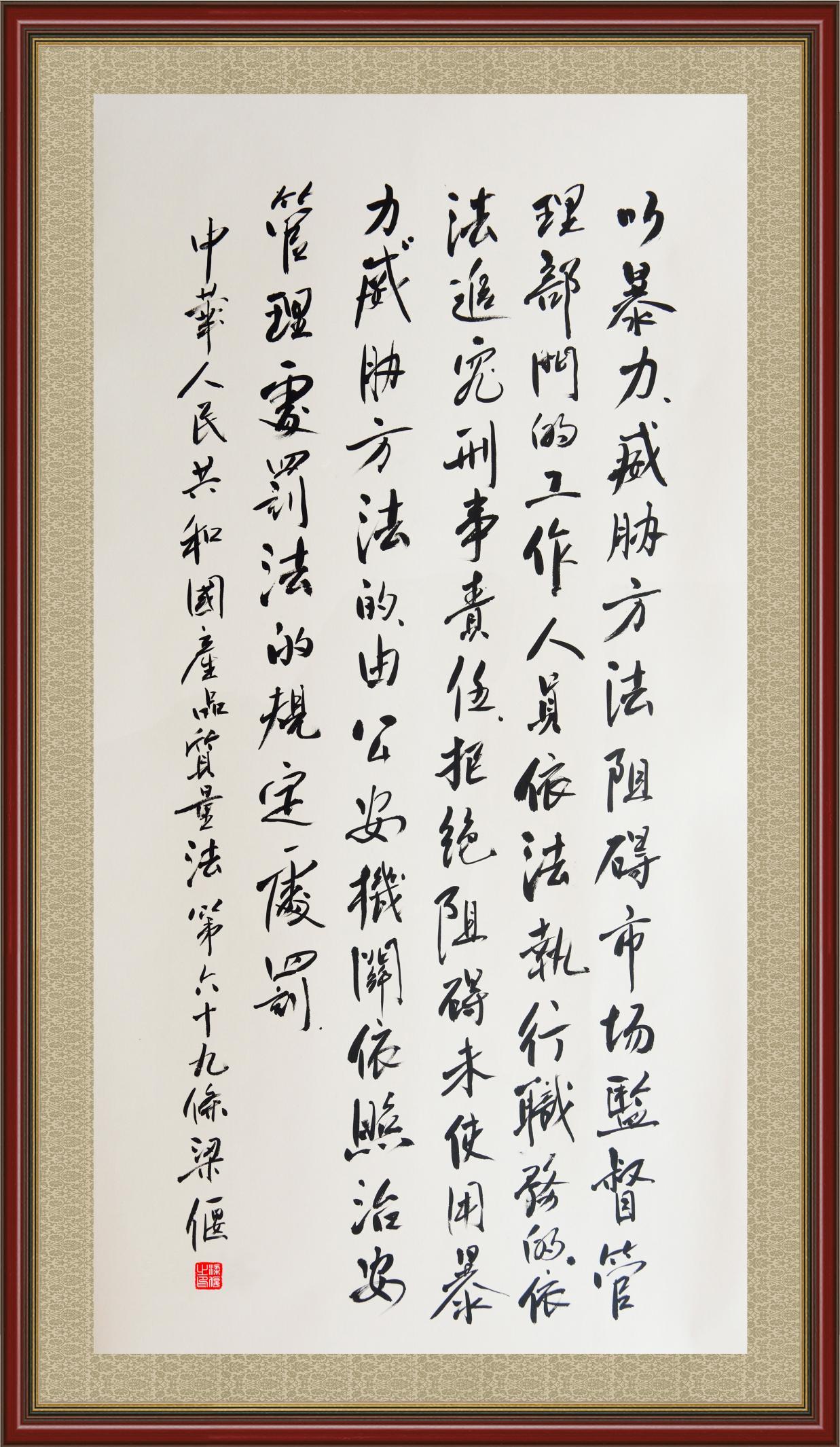《中華人民共和國(guó)產(chǎn)品質(zhì)量法》自1993年9月1日起開(kāi)始施行,先后進(jìn)行三次修正。作為產(chǎn)品質(zhì)量領(lǐng)域的基本法律,產(chǎn)品質(zhì)量法對(duì)規(guī)范產(chǎn)品質(zhì)量管理、維護(hù)消費(fèi)者合法權(quán)益、促進(jìn)經(jīng)濟(jì)社會(huì)發(fā)展具有重要意義。為更好地學(xué)習(xí)、宣傳、貫徹這部法律,在國(guó)家市場(chǎng)監(jiān)督管理總局法規(guī)司的支持下,法治日?qǐng)?bào)社開(kāi)展了“‘書(shū)·法’系列活動(dòng)之書(shū)寫(xiě)《中華人民共和國(guó)產(chǎn)品質(zhì)量法》”活動(dòng)。