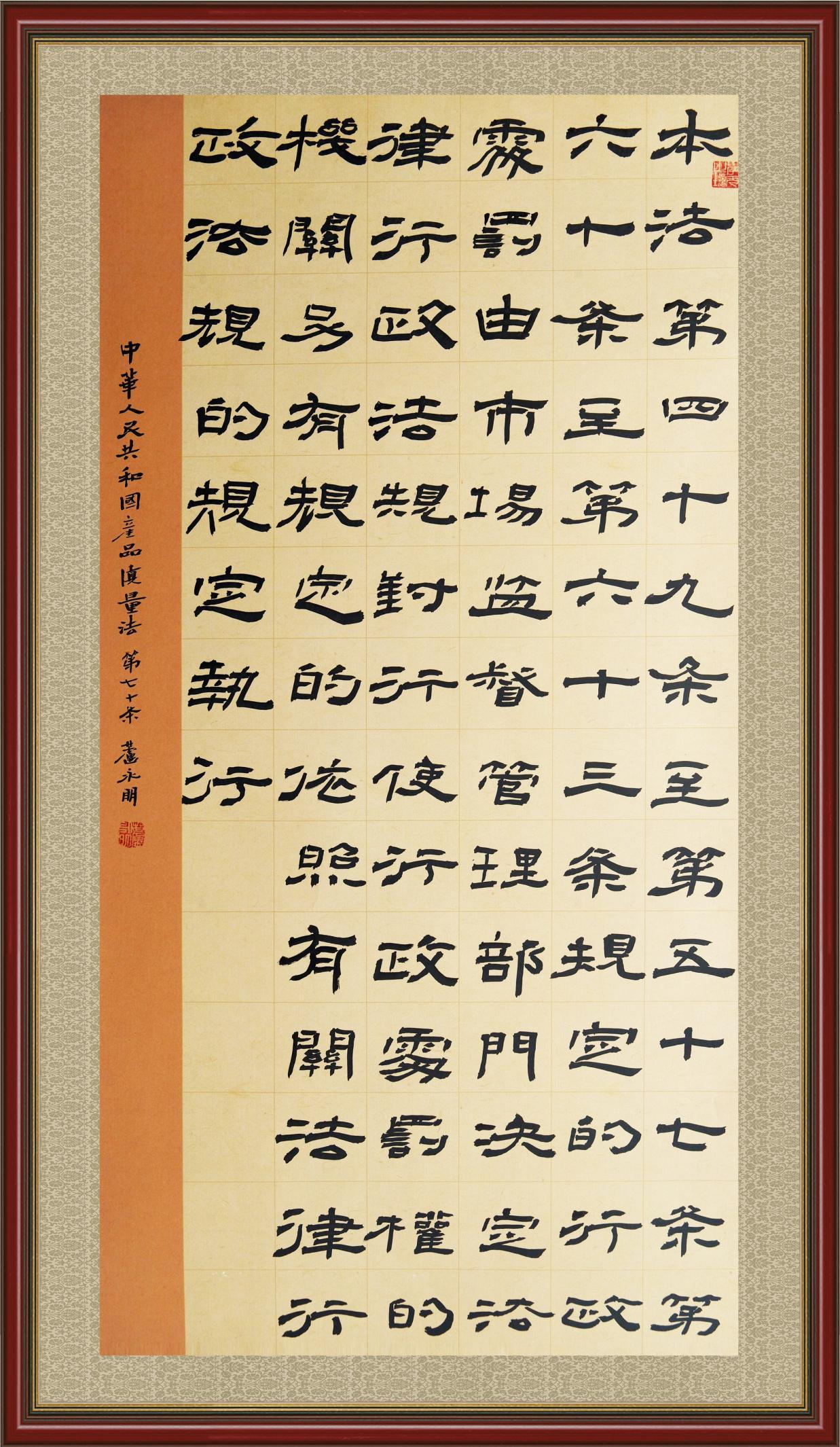《中華人民共和國(guó)產(chǎn)品質(zhì)量法》自1993年9月1日起開始施行,先后進(jìn)行三次修正。作為產(chǎn)品質(zhì)量領(lǐng)域的基本法律,產(chǎn)品質(zhì)量法對(duì)規(guī)范產(chǎn)品質(zhì)量管理、維護(hù)消費(fèi)者合法權(quán)益、促進(jìn)經(jīng)濟(jì)社會(huì)發(fā)展具有重要意義。為更好地學(xué)習(xí)、宣傳、貫徹這部法律,在國(guó)家市場(chǎng)監(jiān)督管理總局法規(guī)司的支持下,法治日?qǐng)?bào)社開展了“‘書·法’系列活動(dòng)之書寫《中華人民共和國(guó)產(chǎn)品質(zhì)量法》”活動(dòng)。
