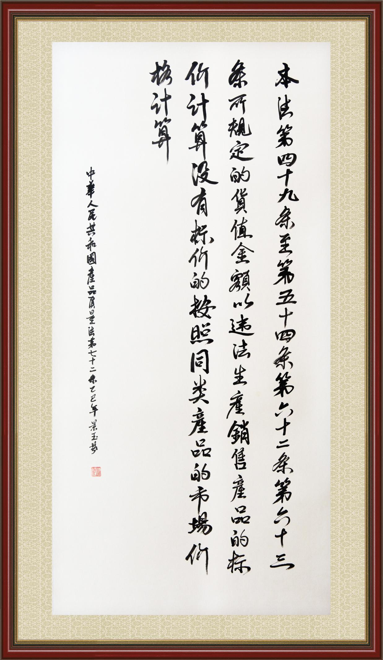 《中華人民共和國(guó)產(chǎn)品質(zhì)量法》自1993年9月1日起開(kāi)始施行,先后進(jìn)行三次修正。作為產(chǎn)品質(zhì)量領(lǐng)域的基本法律,產(chǎn)品質(zhì)量法對(duì)規(guī)范產(chǎn)品質(zhì)量管理、維護(hù)消費(fèi)者合法權(quán)益、促進(jìn)經(jīng)濟(jì)社會(huì)發(fā)展具有重要意義。為更好地學(xué)習(xí)、宣傳、貫徹這部法律,在國(guó)家市場(chǎng)監(jiān)督管理總局法規(guī)司的支持下,法治日?qǐng)?bào)社開(kāi)展了“‘書(shū)·法’系列活動(dòng)之書(shū)寫(xiě)《中華人民共和國(guó)產(chǎn)品質(zhì)量法》”活動(dòng)。