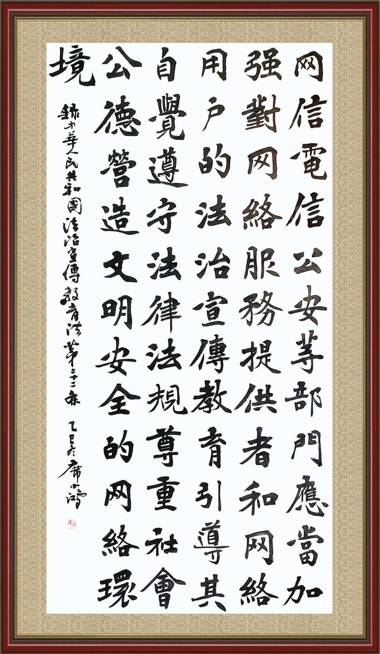 《中華人民共和國法治宣傳教育法》自2025年11月1日起開始施行。法治宣傳教育是全面依法治國的長期基礎性工作。法治宣傳教育法對提升全民法治素養(yǎng)和社會治理法治化水平、推動建設更高水平的社會主義法治國家具有重要意義。為更好地學習、宣傳、貫徹這部法律,法治日報社聯(lián)合司法部普法與依法治理局,開展了“‘書·法’系列活動之書寫《中華人民共和國法治宣傳教育法》”活動。