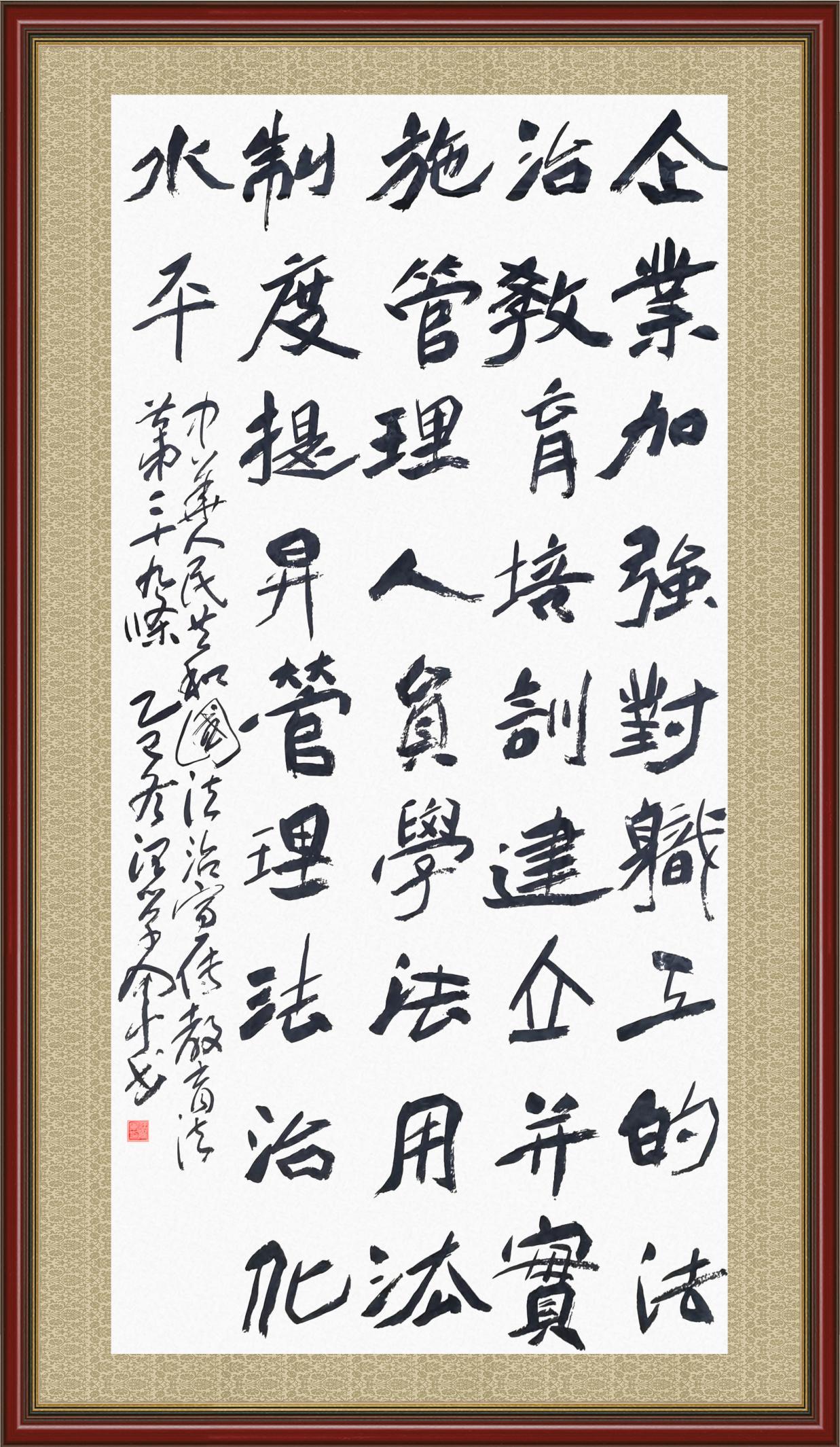 2020年7月11日,由法治日?qǐng)?bào)社主辦的“書·法”系列活動(dòng)正式啟動(dòng),先后書寫《中華人民共和國(guó)民法典》《中華人民共和國(guó)憲法》《中華人民共和國(guó)民營(yíng)經(jīng)濟(jì)促進(jìn)法》等21部法律法規(guī)。
