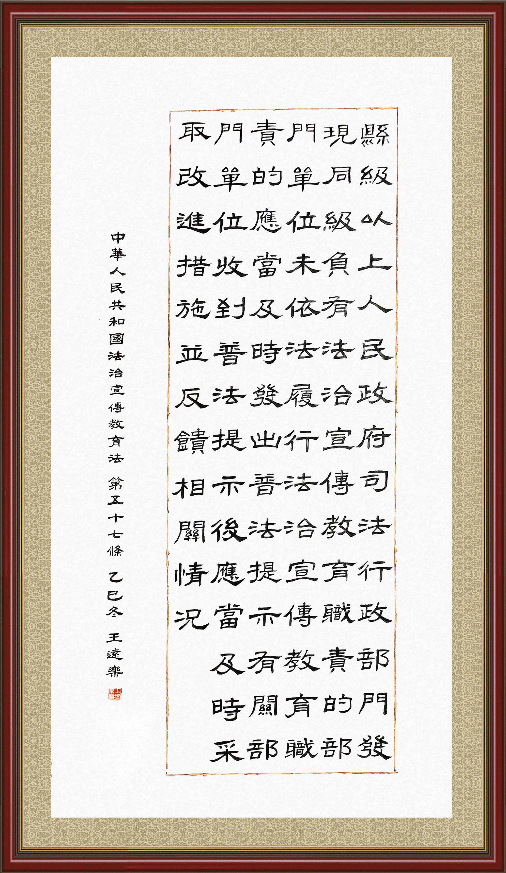 《中華人民共和國法治宣傳教育法》自2025年11月1日起開始施行。法治宣傳教育是全面依法治國的長期基礎性工作。法治宣傳教育法對提升全民法治素養(yǎng)和社會治理法治化水平、推動建設更高水平的社會主義法治國家具有重要意義。為更好地學習、宣傳、貫徹這部法律,法治日報社聯(lián)合司法部普法與依法治理局,開展了“‘書·法’系列活動之書寫《中華人民共和國法治宣傳教育法》”活動。