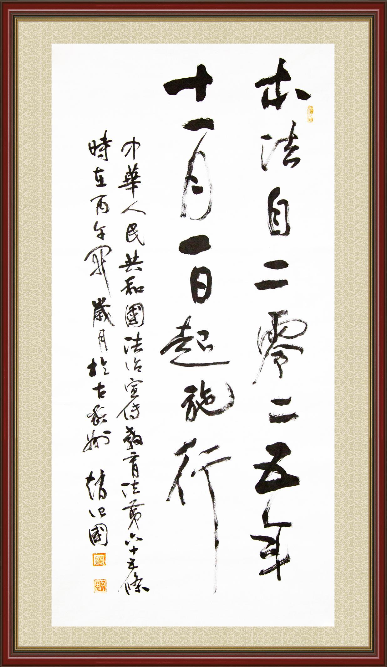 2020年7月11日,由法治日?qǐng)?bào)社主辦的“書·法”系列活動(dòng)正式啟動(dòng),先后書寫《中華人民共和國(guó)民法典》《中華人民共和國(guó)憲法》《中華人民共和國(guó)民營(yíng)經(jīng)濟(jì)促進(jìn)法》等21部法律法規(guī)。
