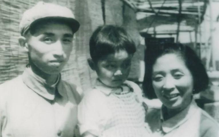 上海剛解放,父親母親在新華社華東總分社(上海分社),抱著紅勝照相