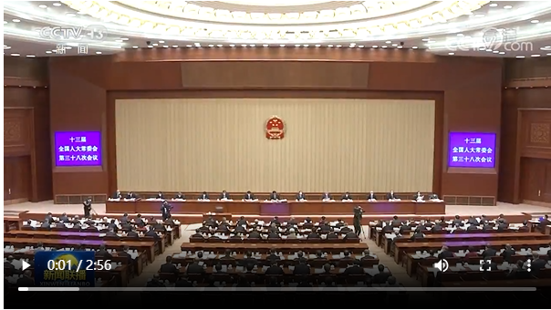 新華社北京12月27日電?十三屆全國(guó)人大常委會(huì)第三十八次會(huì)議27日上午在北京人民大會(huì)堂舉行第一次全體會(huì)議。栗戰(zhàn)書委員長(zhǎng)主持。