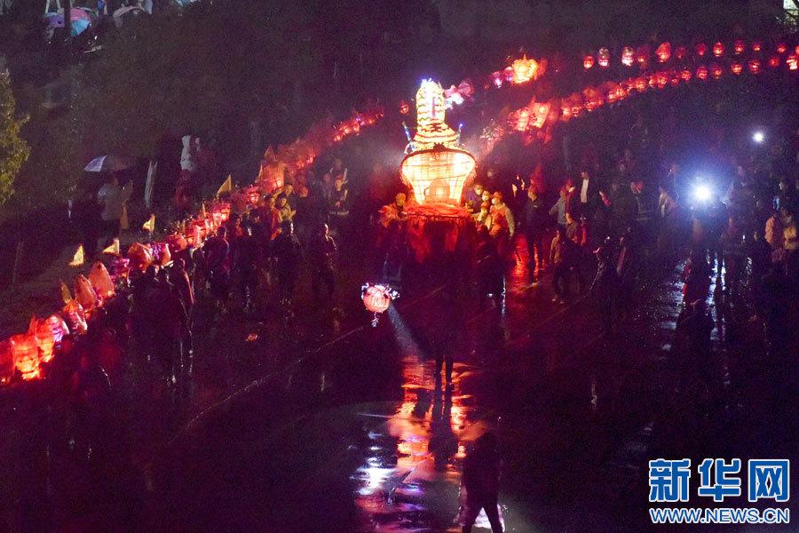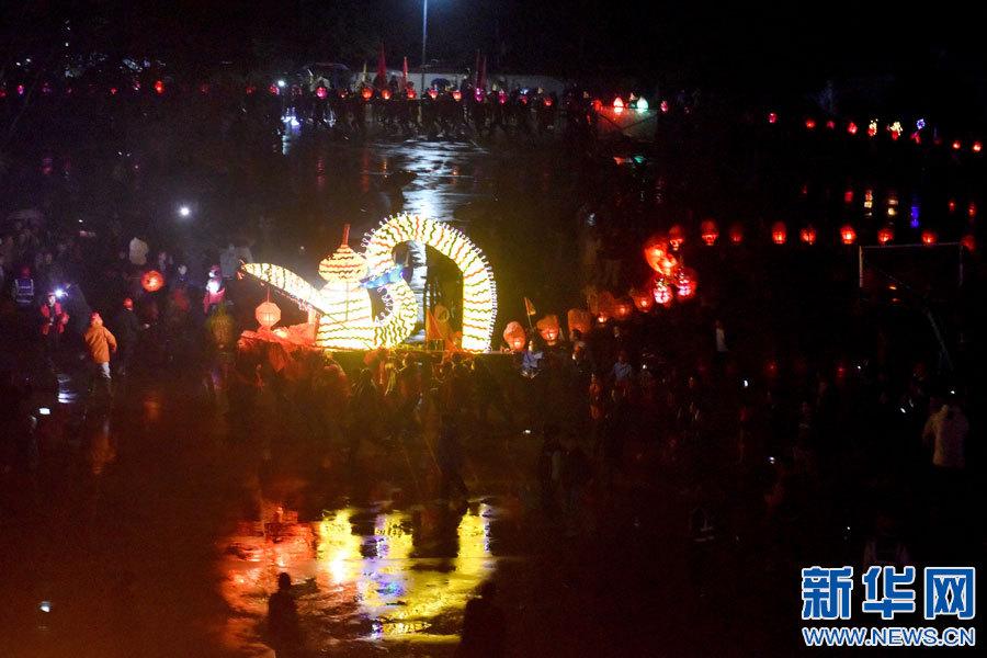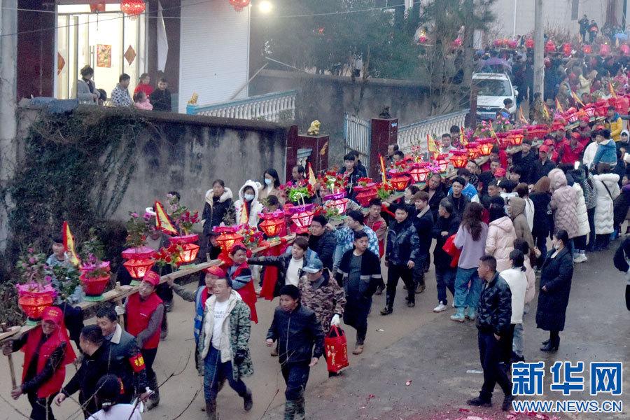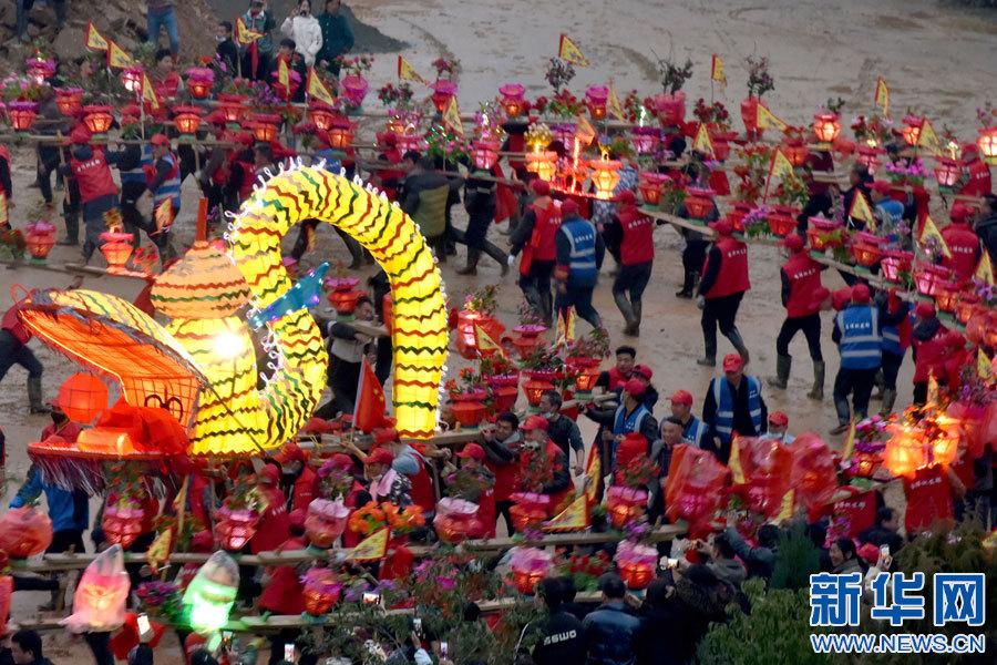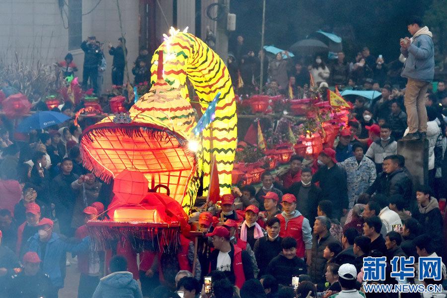 景德鎮(zhèn)市樂平市禮林鎮(zhèn)洄田村板橋龍燈表演。(新華網(wǎng)發(fā) 朱定文 攝)