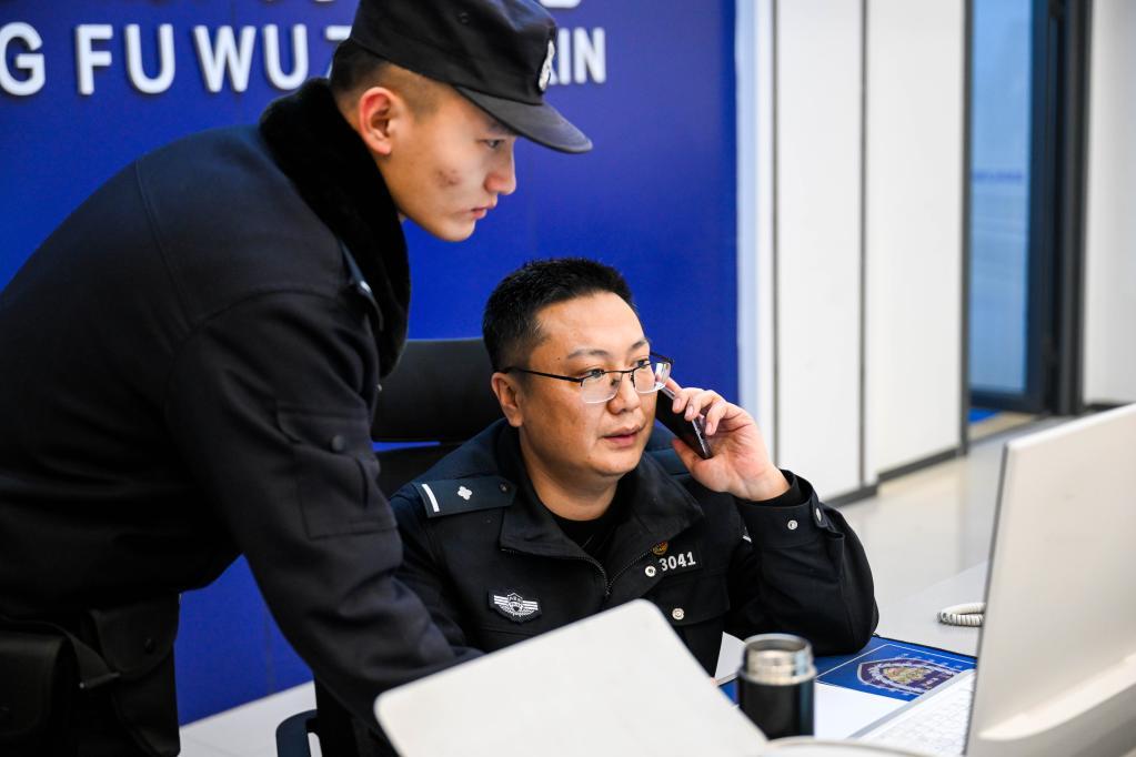 2月5日,通遼市奈曼旗公安局大沁他拉派出所民警們在綜合指揮室值班。