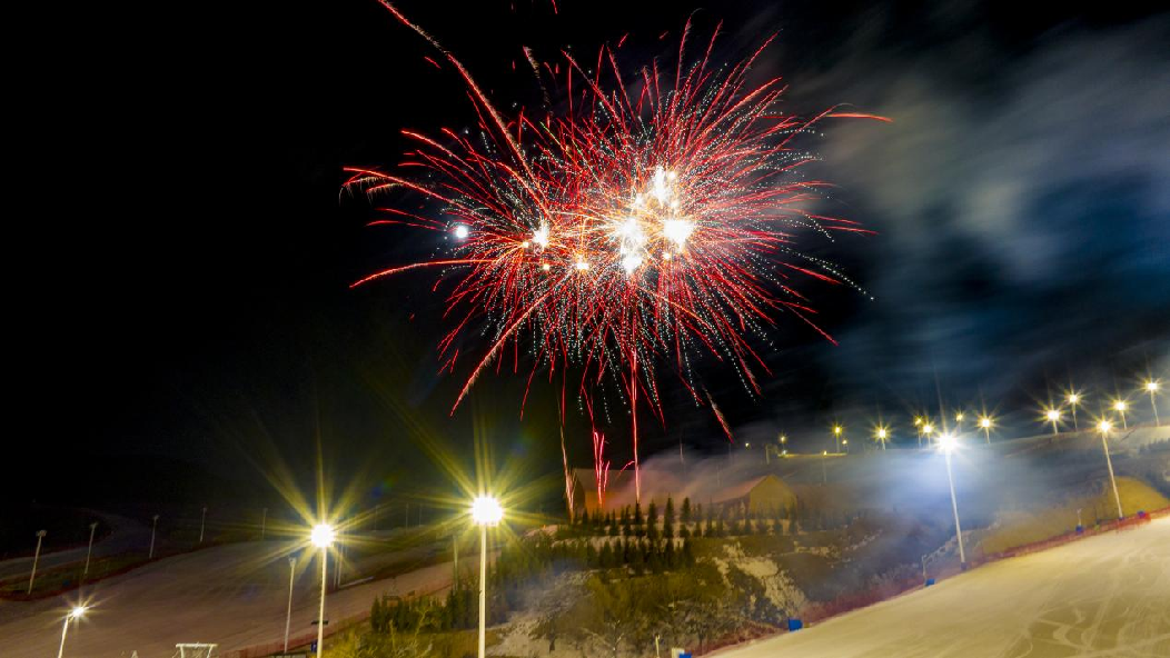 當(dāng)晚,“雪地?zé)熁ㄐ悖鼧烽_懷”主題活動在呼和浩特市馬鬃山滑雪場舉辦。