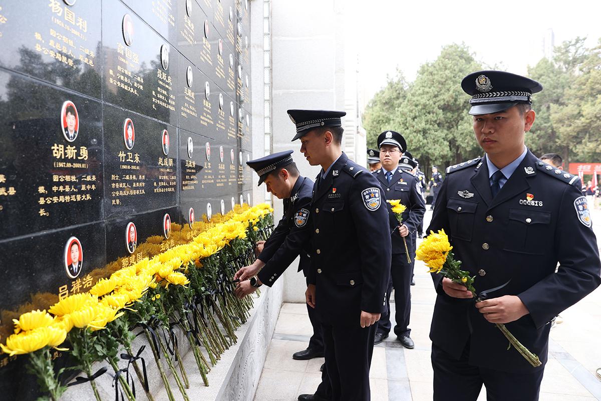 3月31日,河南省公安廳機關(guān)青年民警代表120余人來到鄭州烈士陵園河南公安英烈紀(jì)念廣場開展清明祭英烈活動。全省公安民警牢記宗旨使命,忠誠履職盡責(zé),勇于擔(dān)當(dāng)作為,甘于犧牲奉獻,僅2022年以來,全省公安機關(guān)就有30名民警為公安事業(yè)獻出了寶貴的生命。圖為民警敬獻鮮花。