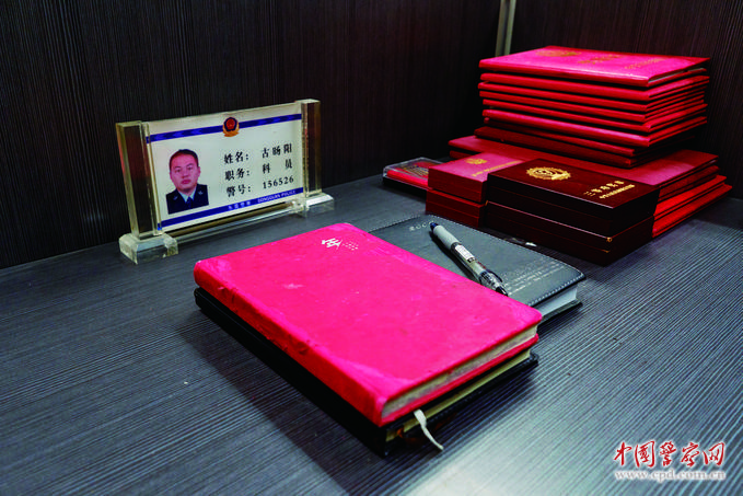 古暘陽辦公桌上的筆記本和榮譽(yù)證書。張中攝