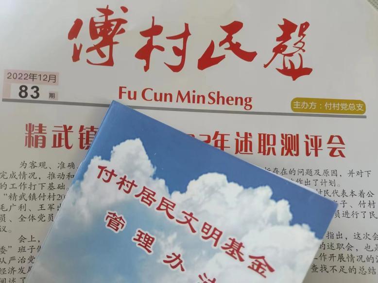 圖為付村村報與《付村居民文明基金管理辦法》